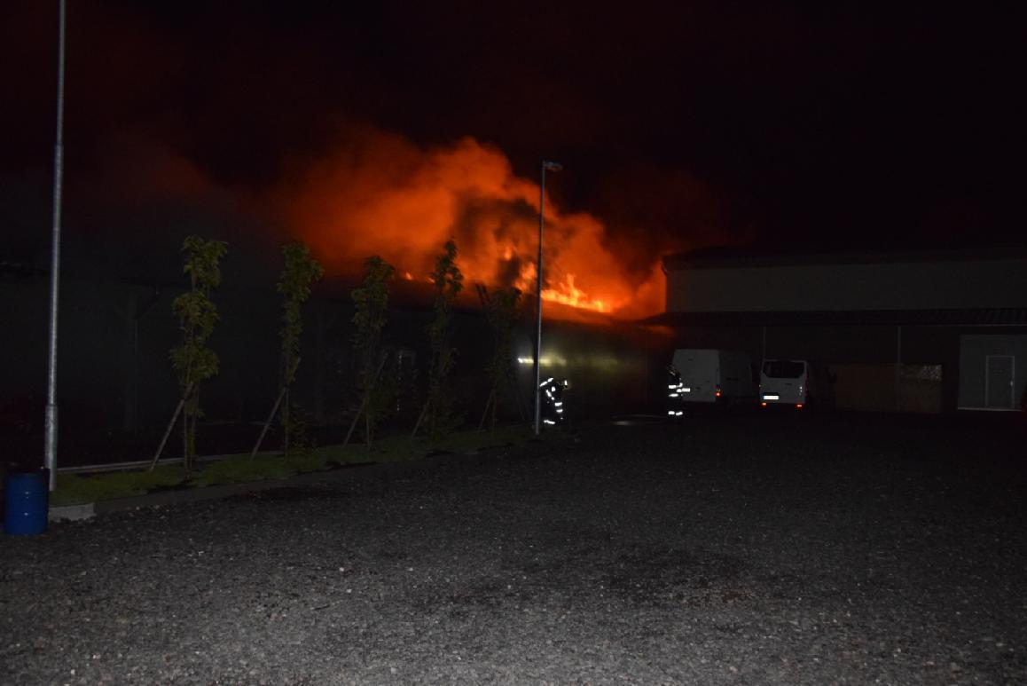 Při příjezdu prvních jednotek byla požárem zasažena výrobní hala dřevěných podlahových krytin o půdorysu 20 x 40 metrů, která se ovšem nacházela v uzavřeném areálu firmy. Do příjezdu zástupce společnosti tak prvotní zásah probíhal několika vodními proudy přes plot. Později bylo nasazeno šest proudů C ze země a další dva z výškové techniky.