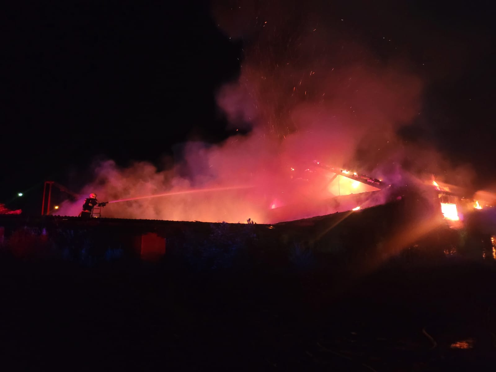 Požár se jednotkám podařilo dostat pod kontrolu po dvou hodinách náročného zásahu, takže několik minut před druhou hodinou byla ohlášena jeho lokalizace. Z objektu hasiči vynesli dvě 33kilogramové a dvě 10kilogramové propanbutanové lahve, které ochlazovali vodou. Krátce poté byl požární poplach snížen na druhý stupeň a začalo vyhledávání skrytých ohnisek, která byla hlavně pod zborcenou konstrukcí, část poškozené stavby museli hasiči postupně rozebírat.