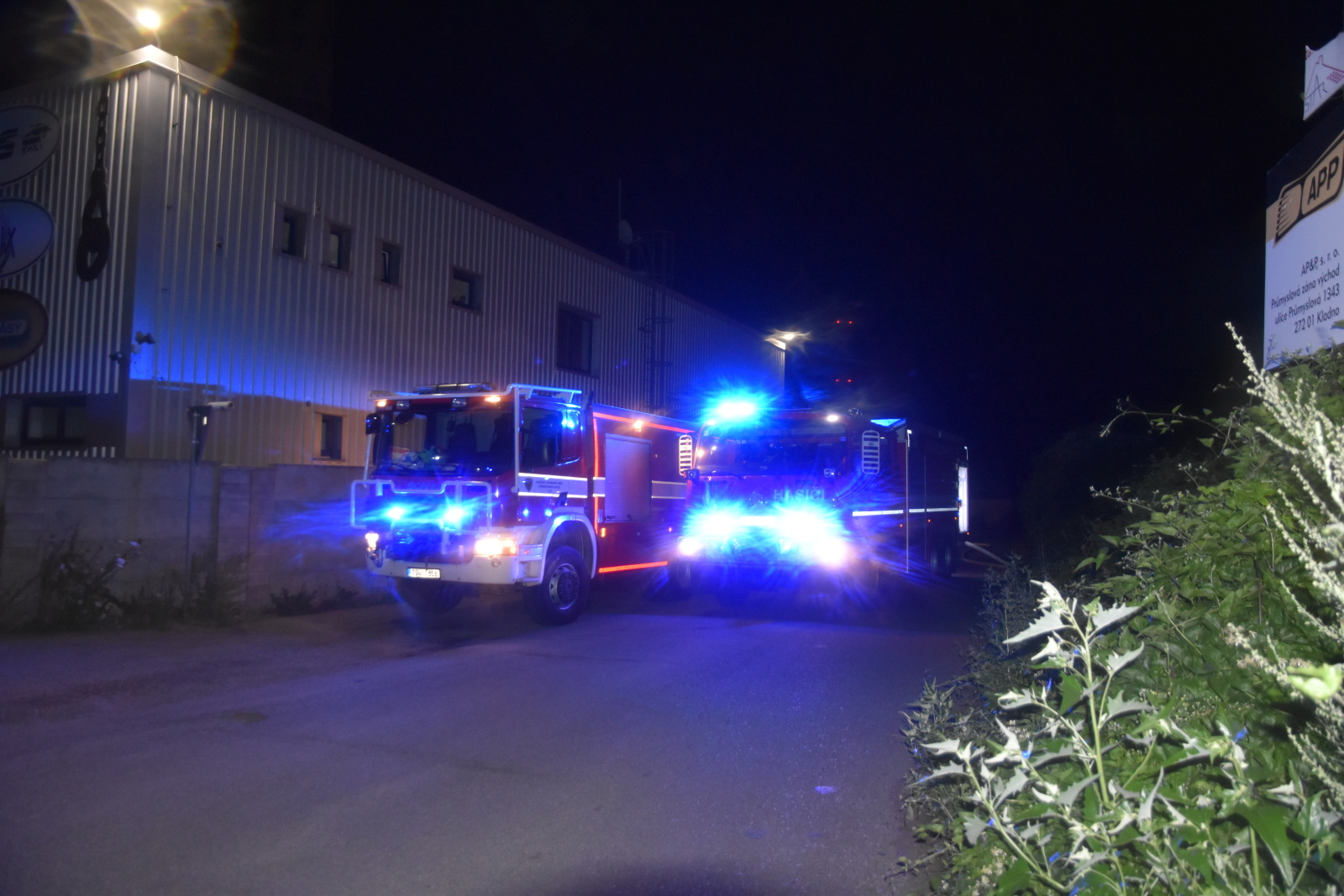 Podle upřesňující informace plameny zachvátily halu ve výkupně kovového odpadu v ulici Na Valmetce. Krajské operační a informační středisko HZS Středočeského kraje k události vyslalo profesionální hasiče z Kladna a jednotky sboru dobrovolných hasičů obcí Hřebeč a Pchery. Pět minut před půlnocí už byli kladenští hasiči na místě a velitel jednotky po rychlém průzkumu ihned požádal o vyslání posil z druhého poplachového stupně. Kromě toho nechal přivolat zdravotnickou záchrannou službu, protože v areálu výkupny byla jedna lehce popálená osoba, která se zřejmě také nadýchala zplodin hoření.