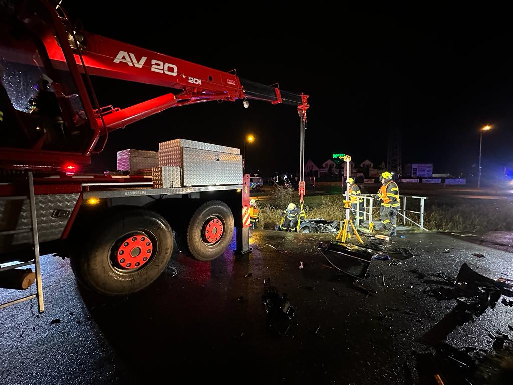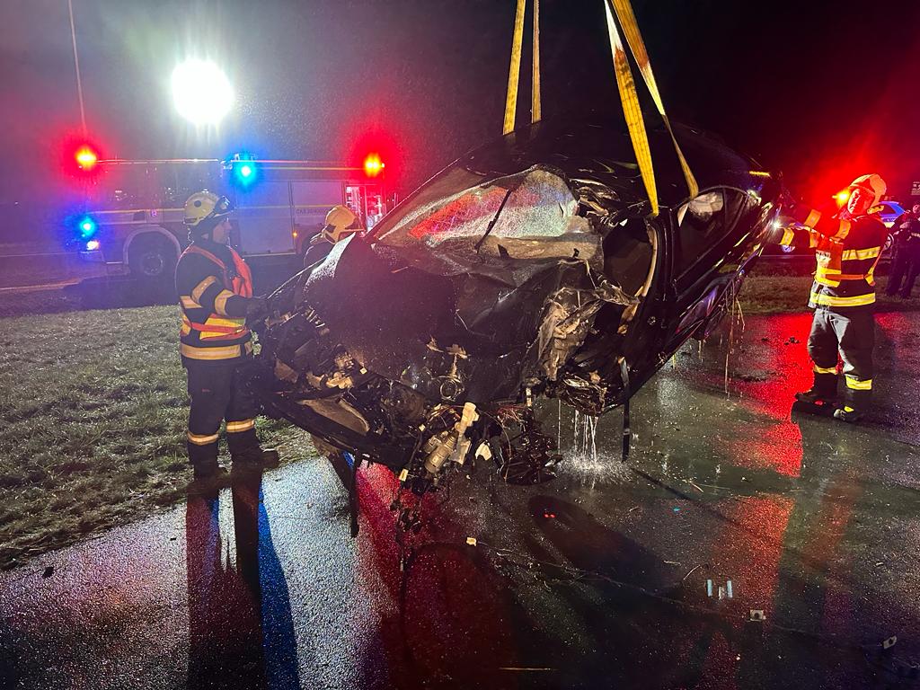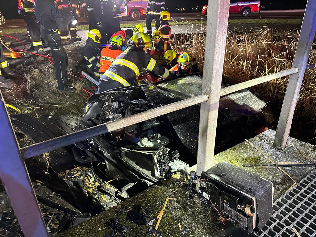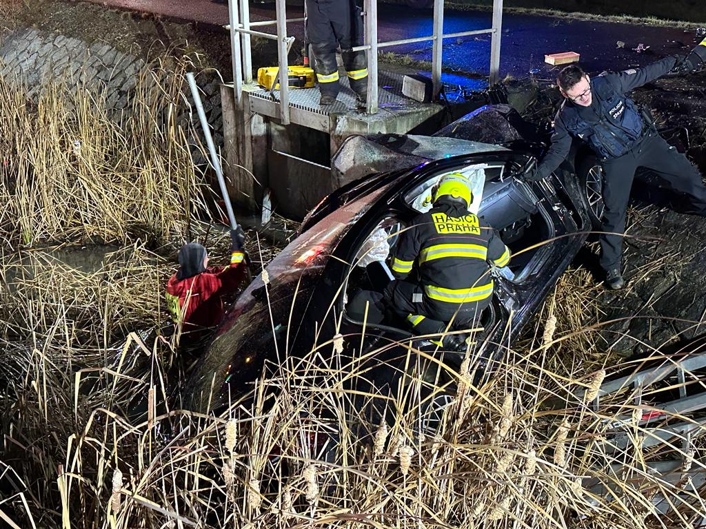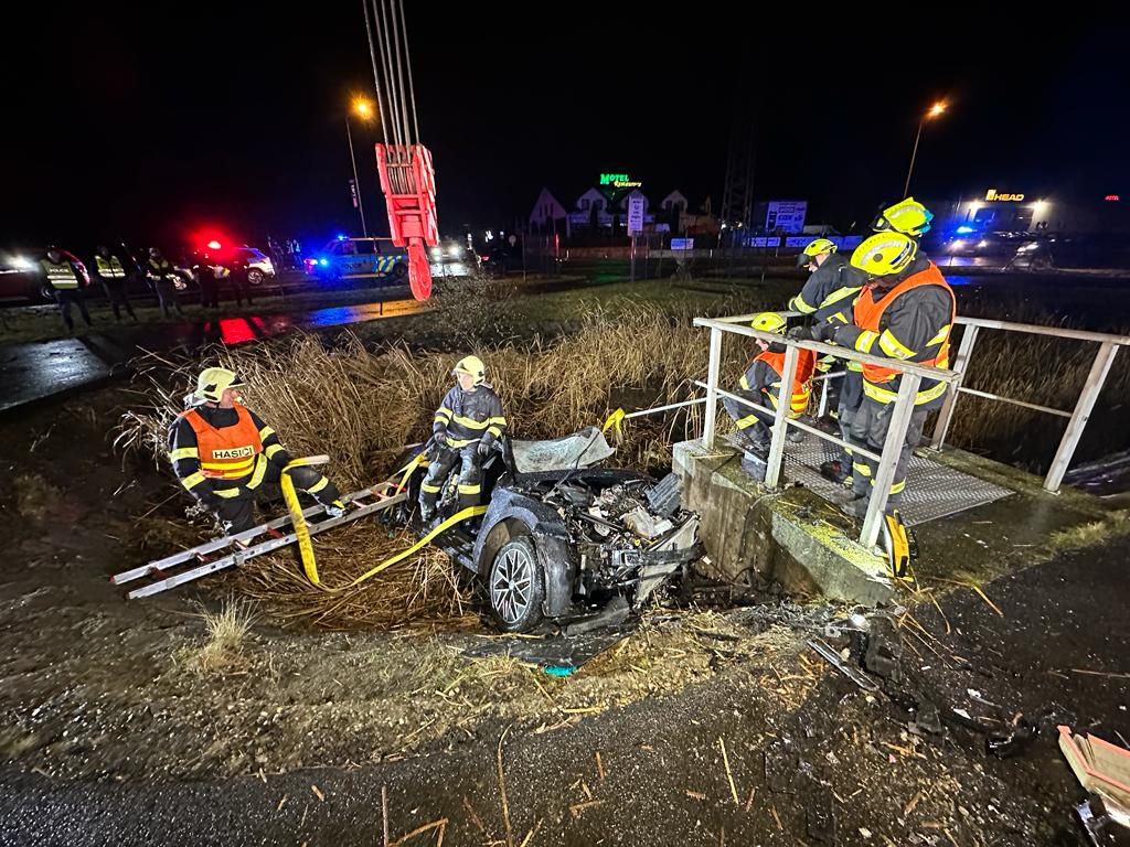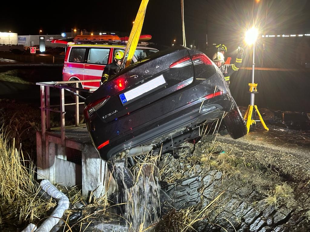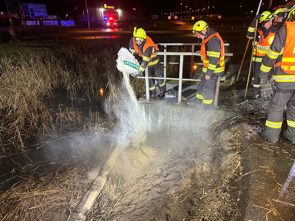 Z důvodu úniku provozních kapalin hasiči okolo vozidla nasadili sorpční hady a únik zasypali sorbentem. Za pomoci jeřábu následně automobil vyzvedli z retenční nádrže. Zároveň nasvěcovali místo události pro potřeby policie, která pro zadokumentování nehody využila i dron. Zásah byl ukončen pár minut před půl třetí v noci na úterý.