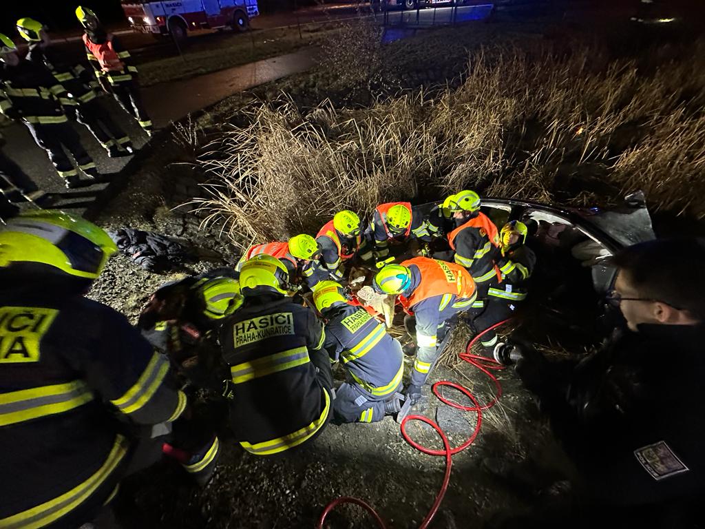 Vzhledem k tomu, že z posádky vozidla nikdo nereagoval, operátor tísňové linky klasifikoval mimořádnou událost jako dopravní nehoda s vyproštěním, což je nejzávažnější typ dopravních nehod. Operační důstojník k události vyslal profesionální jednotky z hasičských stanic Jílové a Říčany, předurčenou dobrovolnou jednotku na dopravní nehody Dolní Jirčany a v rámci mezikrajské pomoci také profesionální jednotku z hasičské stanice Praha Modřany.