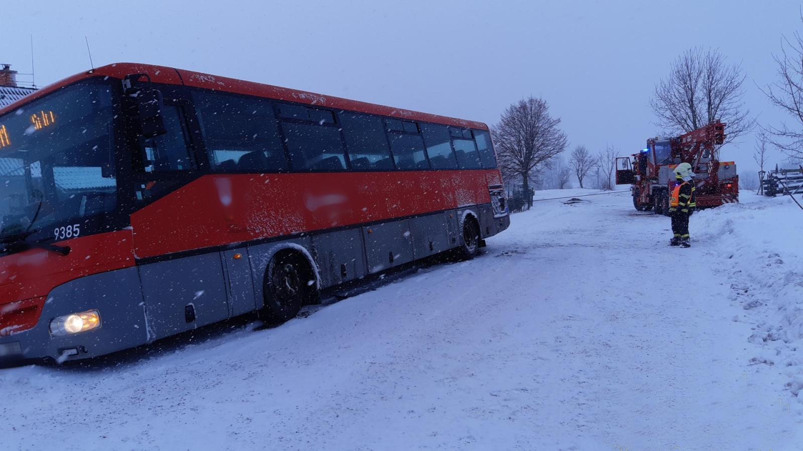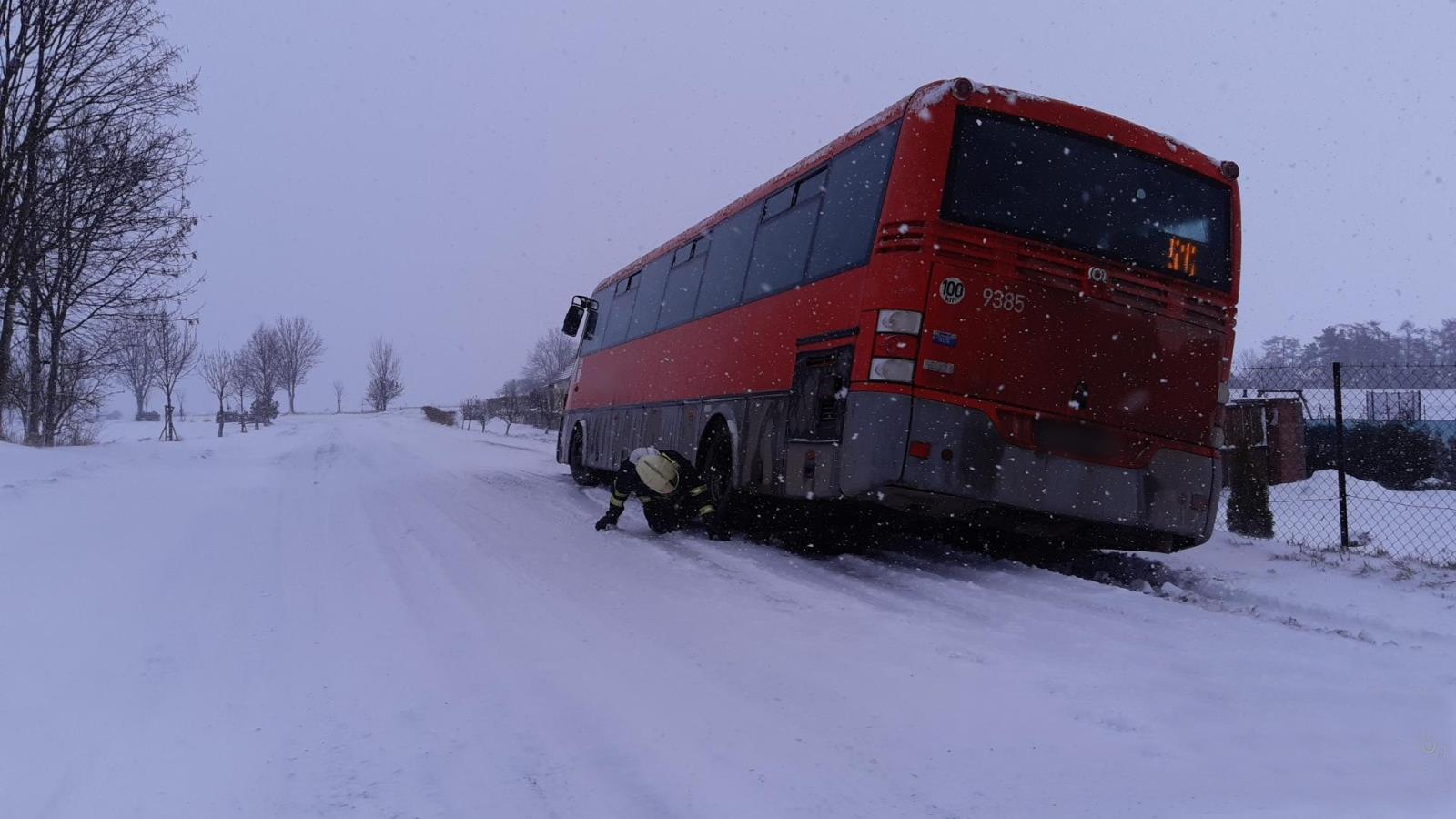 Necelou hodinu po poledni byla na linku tísňového volání nahlášena dopravní nehoda linkového autobusu kousek za obcí Obecnice směrem k Drahlínu na Příbramsku. Podle prvotní informace sjel autobus na zasněžené vozovce do příkopu a hrozilo jeho převrácení. Operační důstojník k události vyslal profesionální hasiče za stanice HZS Příbram s cisternovou automobilovou stříkačkou a vyprošťovacím automobilem. Po příjezdu na místo bylo zjištěno, že v době nehody v autobuse cestovaly tři osoby, které už odešly. Kvůli nesjízdné komunikaci si velitel zásahu na místo vyžádal sypač k ošetření vozovky. Hasiči poté pomocí vyprošťovacího automobilu autobus vytáhli zpět na silnici.