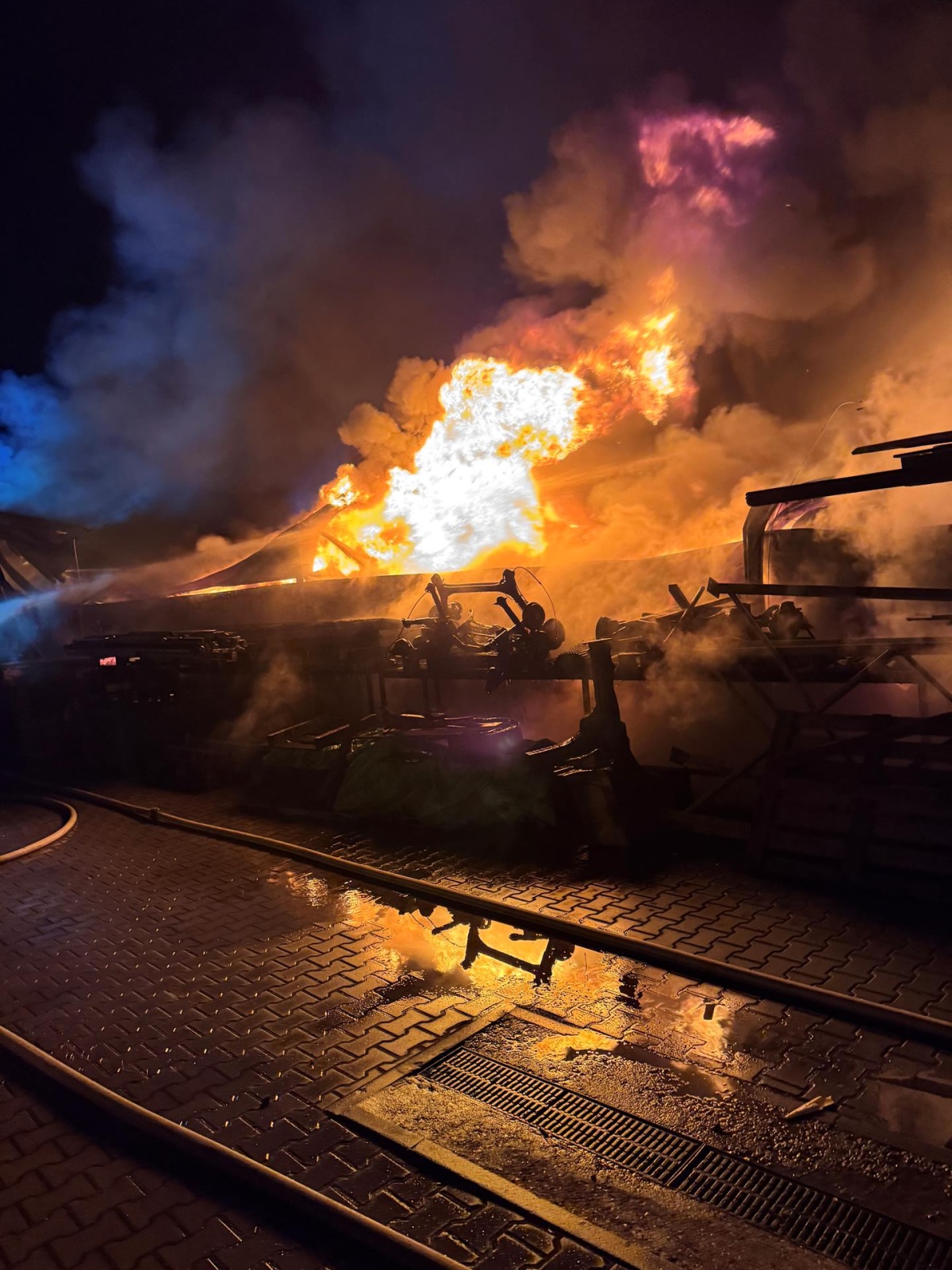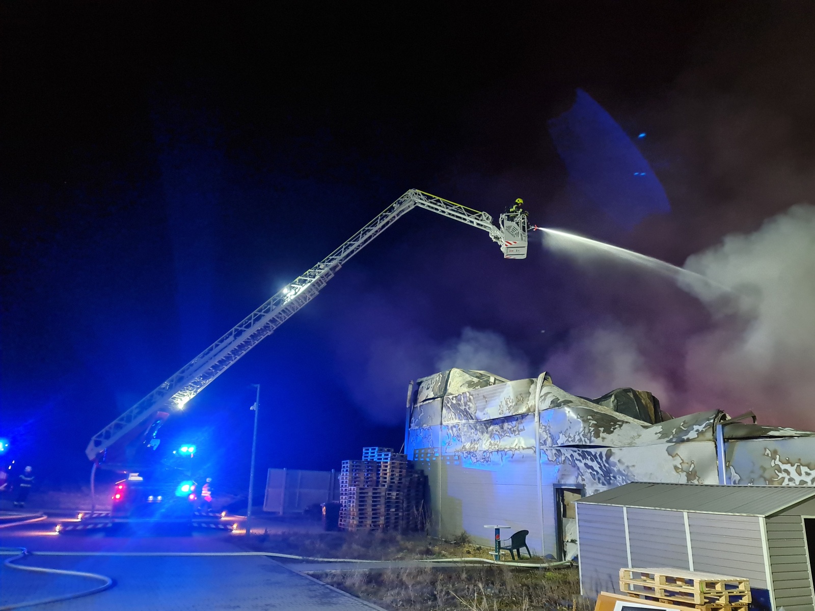 „Už při jízdě k požáru jsme viděli, že se jedná o mimořádně rozsáhlý požár. Plameny dosahovaly výšky několika metrů a střechu haly pohltily během několika minut,“ popsal jeden ze zasahujících hasičů.