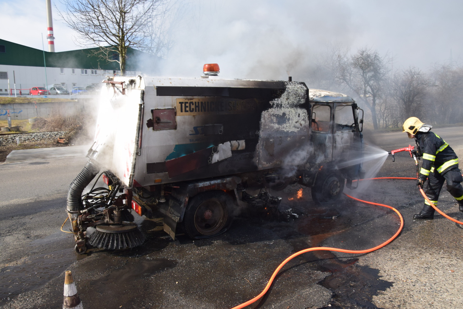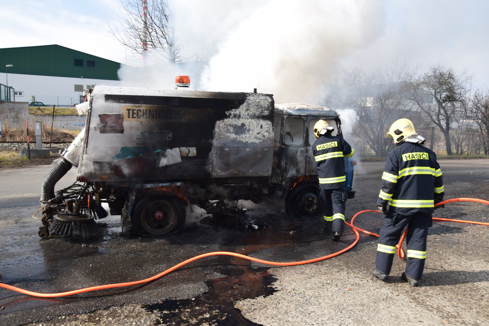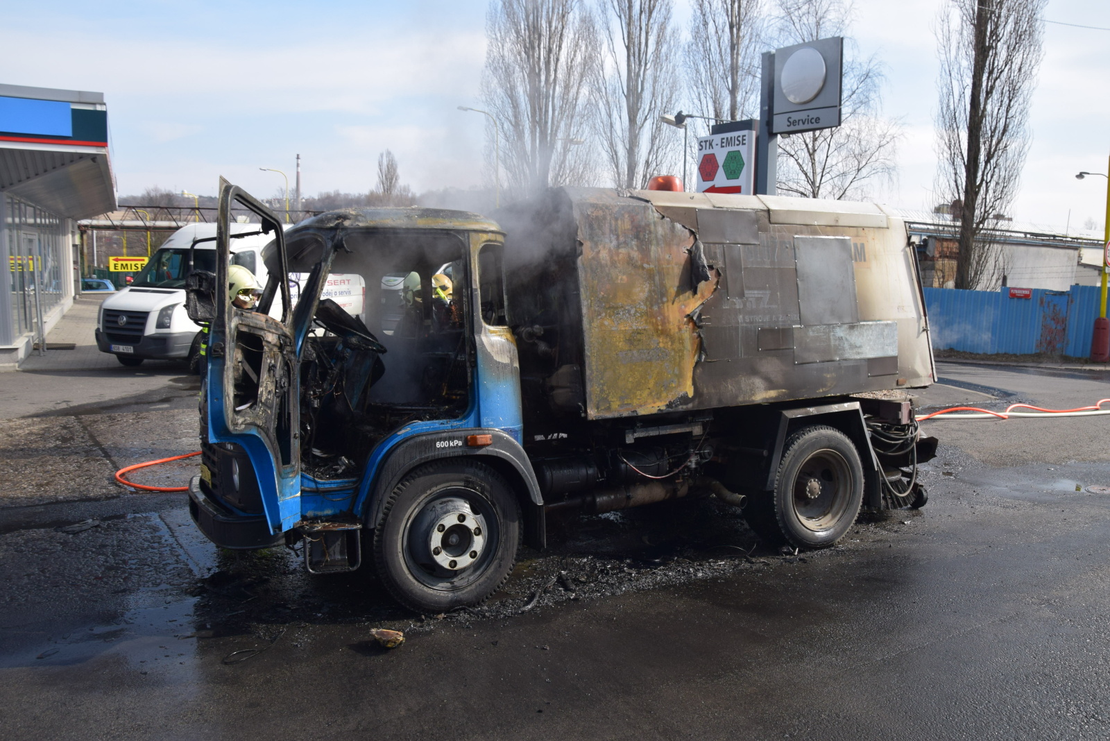 V pondělí 13. března 13 minut po 13. hodině začal v Obecnické ulici u STK v Příbrami hořet nákladní automobil Avia se speciální nástavbou pro zametání a samosběr.