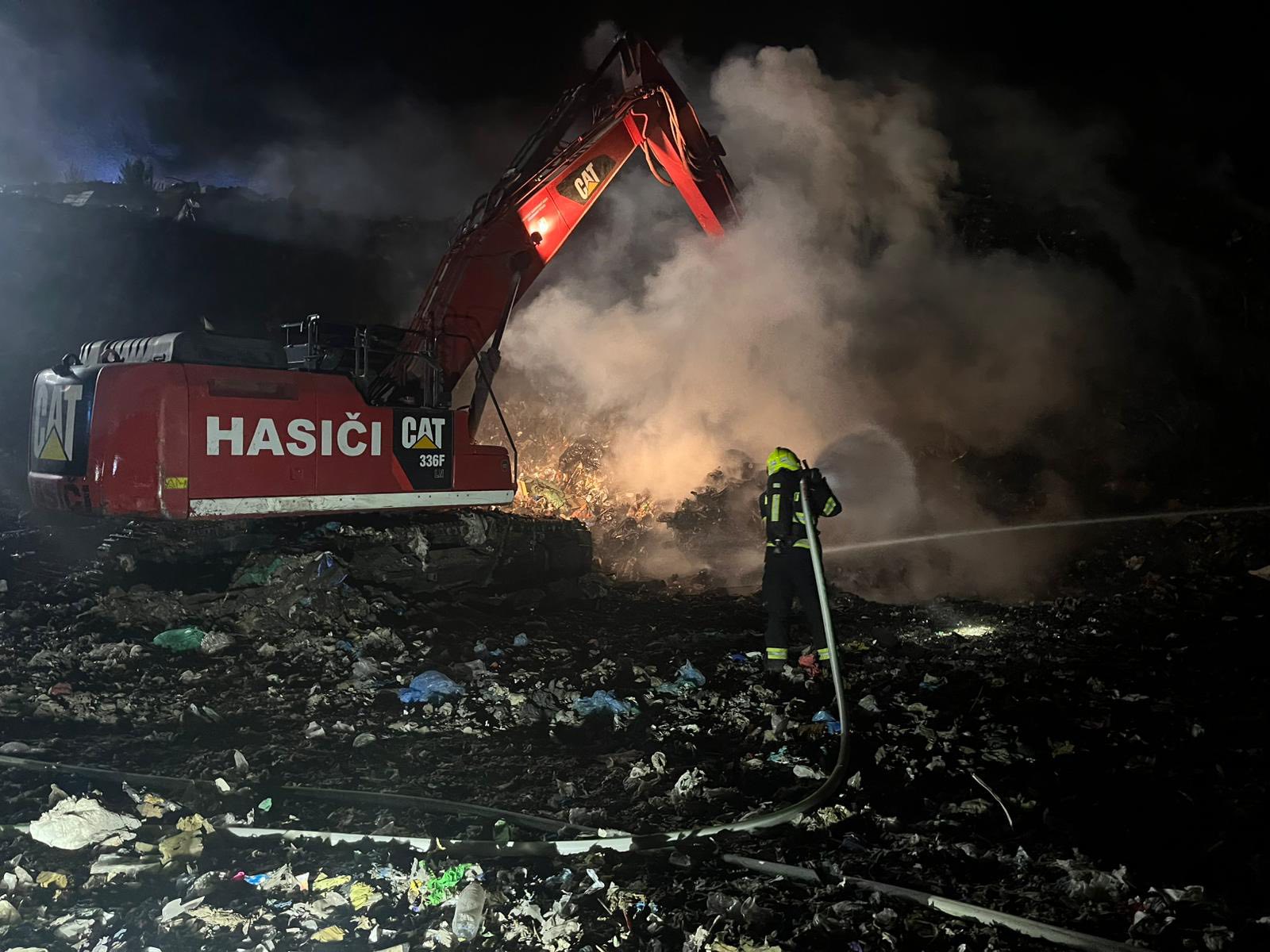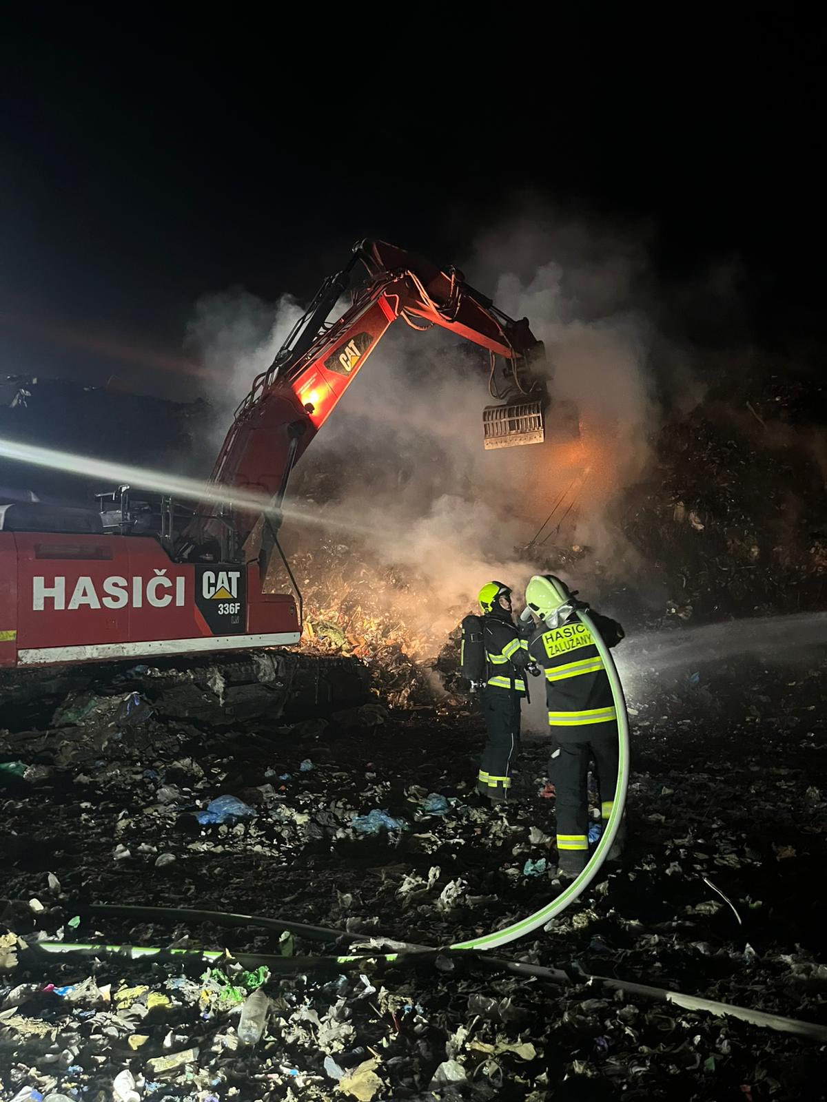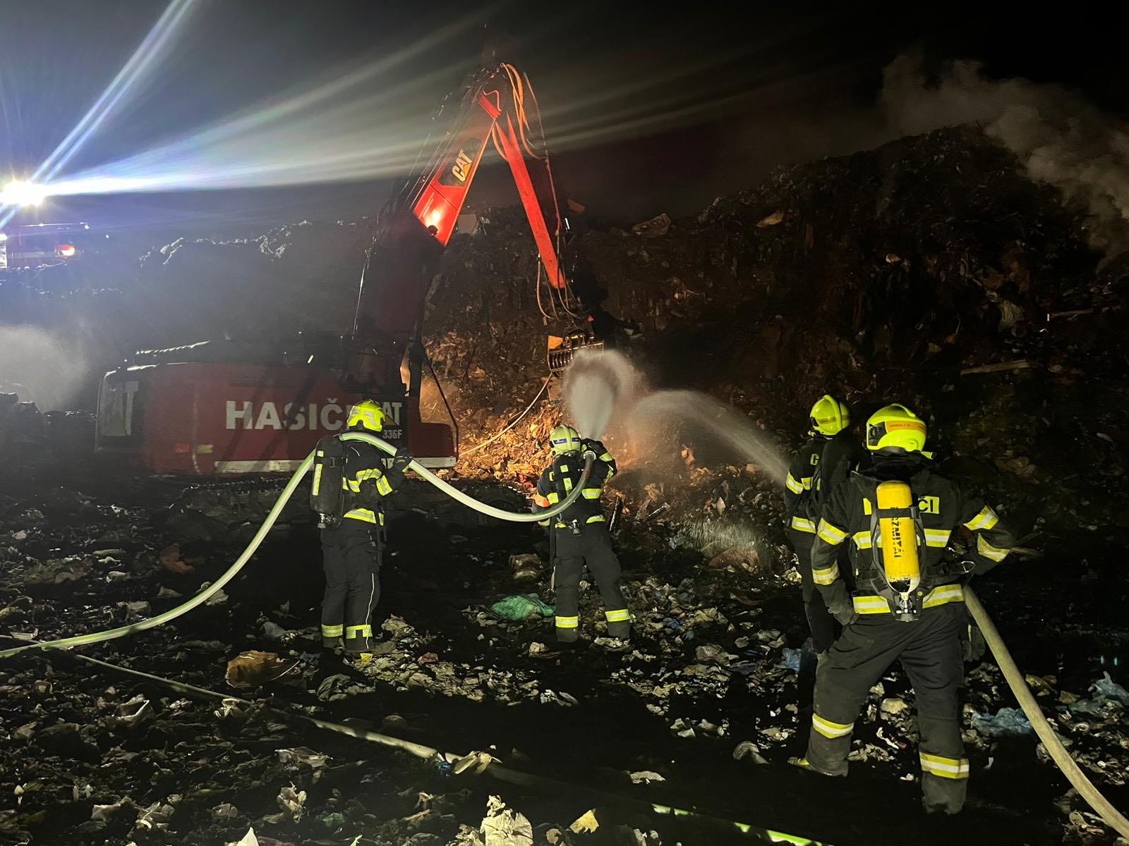 Na místo dorazilo pásové rypadlo CAT 336 F z dislokace Jihlava. Společně s hasiči ze Středočeského kraje rozhrnovalo vrstvy odpadu, aby bylo možné dostat se k žhavým místům a definitivně je uhasit.
