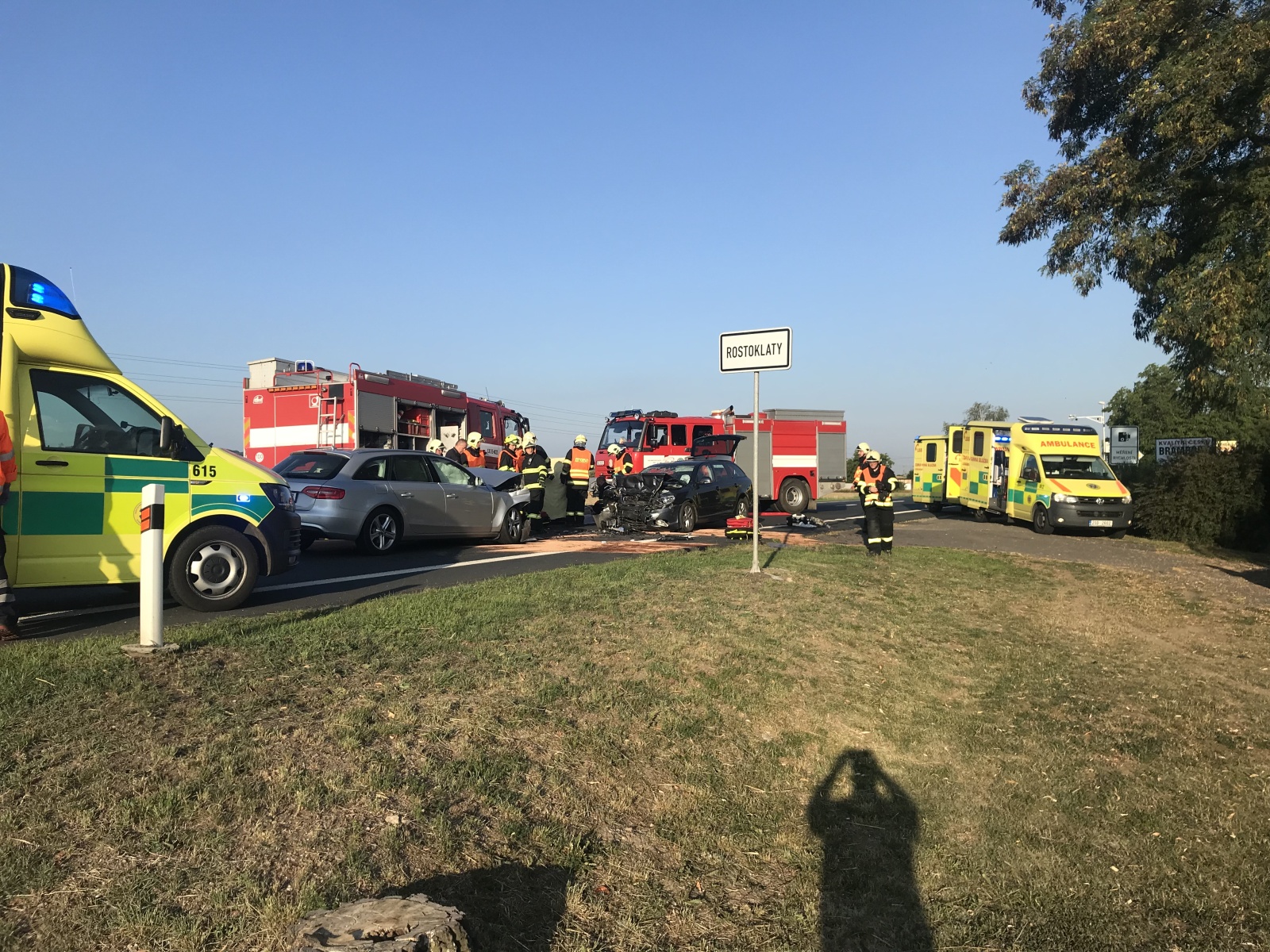 Ve středu 25. července 2018 krátce před půl sedmou byla na linku tísňového volání Hasičského záchranného sboru Středočeského kraje ohlášena vážná dopravní nehoda dvou osobních vozidel na silnici číslo 12 na začátku obce Rostoklaty ve směru od Kolína.