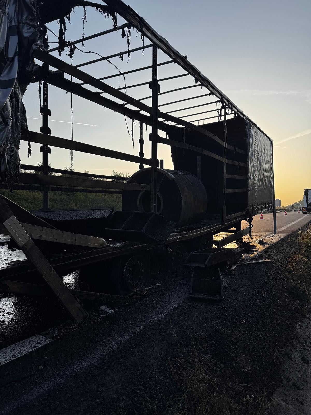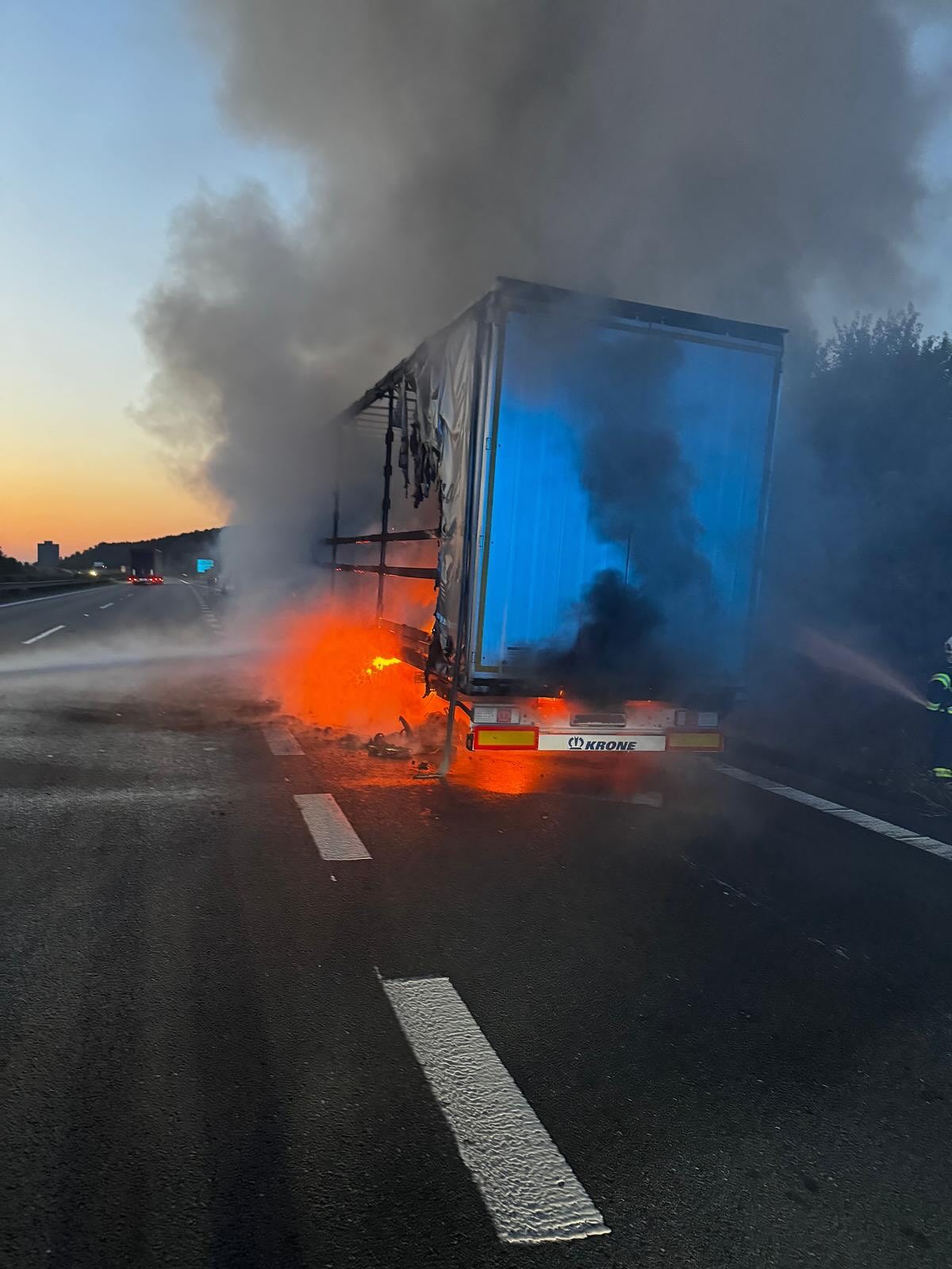 Řidič kamionu projevil duchapřítomnost – bleskově odpojil tahač od hořícího návěsu a odvezl ho do bezpečné vzdálenosti. Díky tomu se podařilo vozidlo uchránit od zničení.