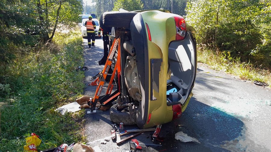 Uvnitř havarovaného automobilu zůstaly dvě osoby, které nebyly schopné dostat se ven samy. Hasiči proto zahájili vyprošťovací práce s použitím speciální techniky. Po úspěšném vyproštění byly obě osoby předány do péče zdravotnické záchranné služby. Podle dostupných informací byla jedna z nich transportována vrtulníkem, druhá byla převezena do nemocnice sanitkou.