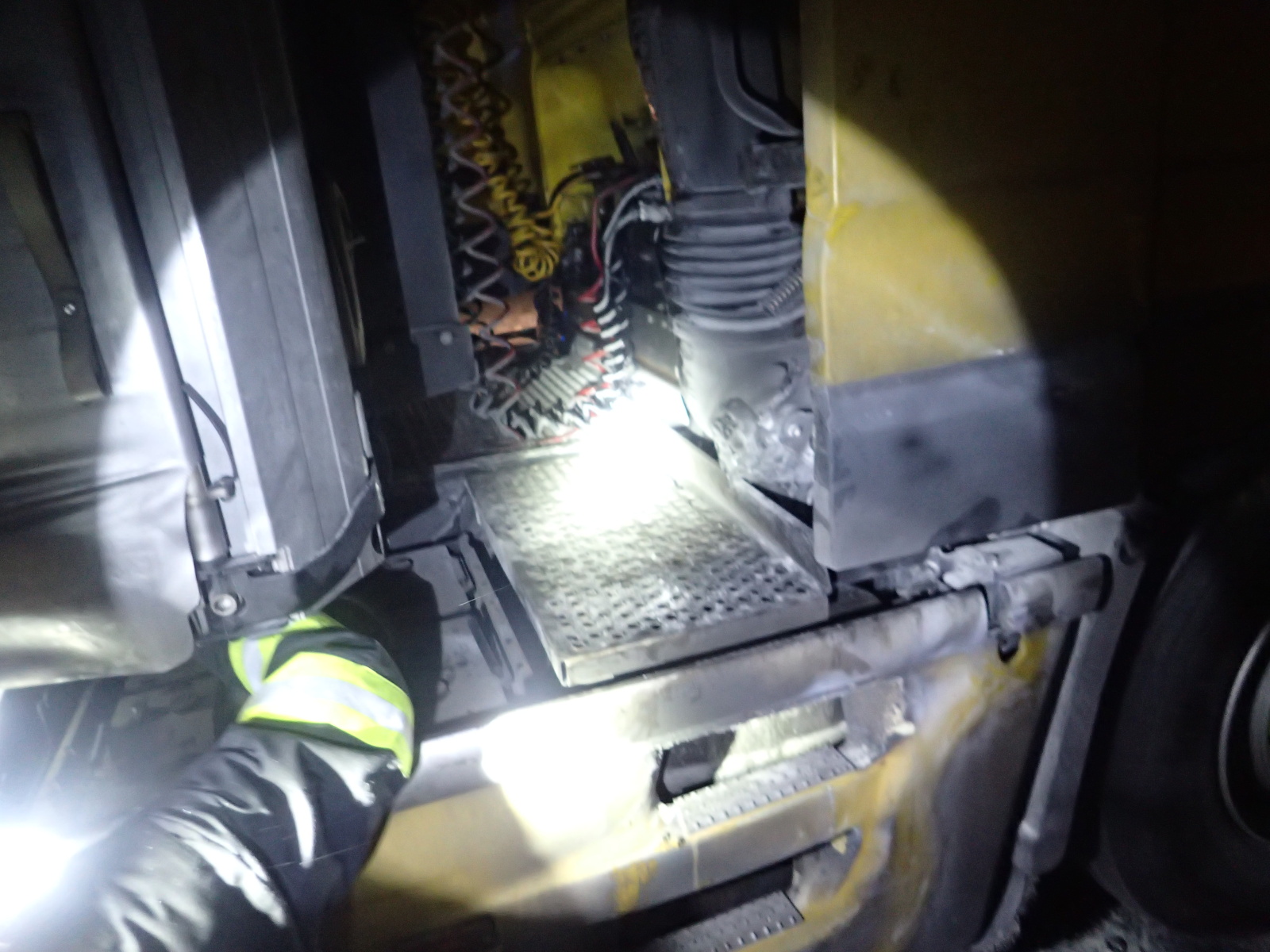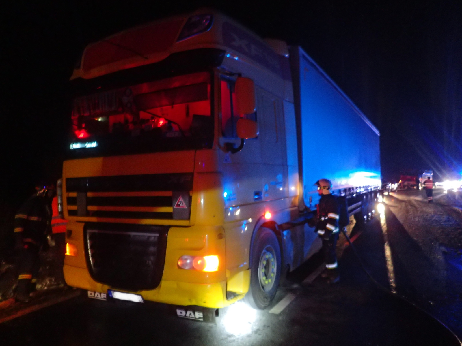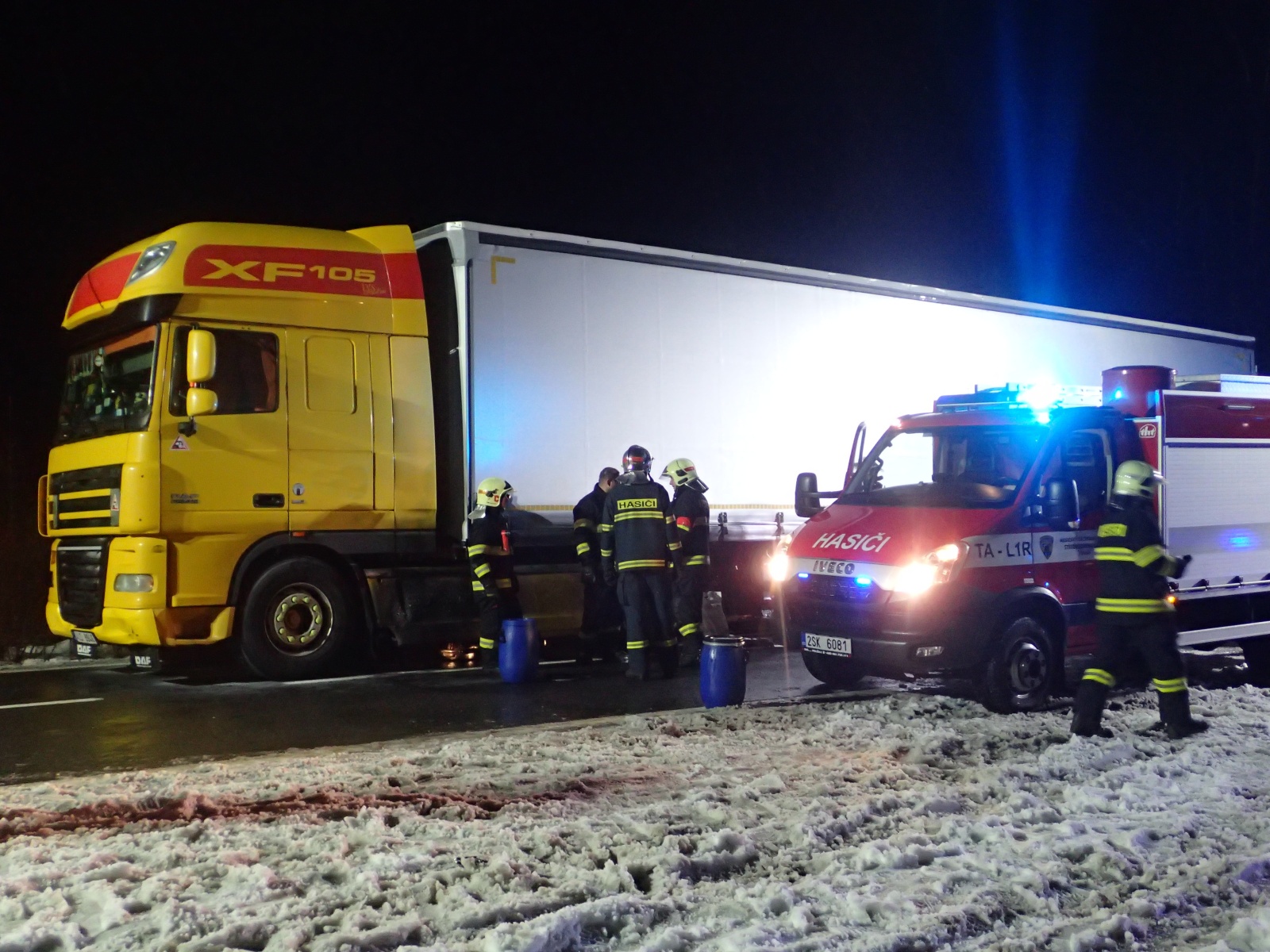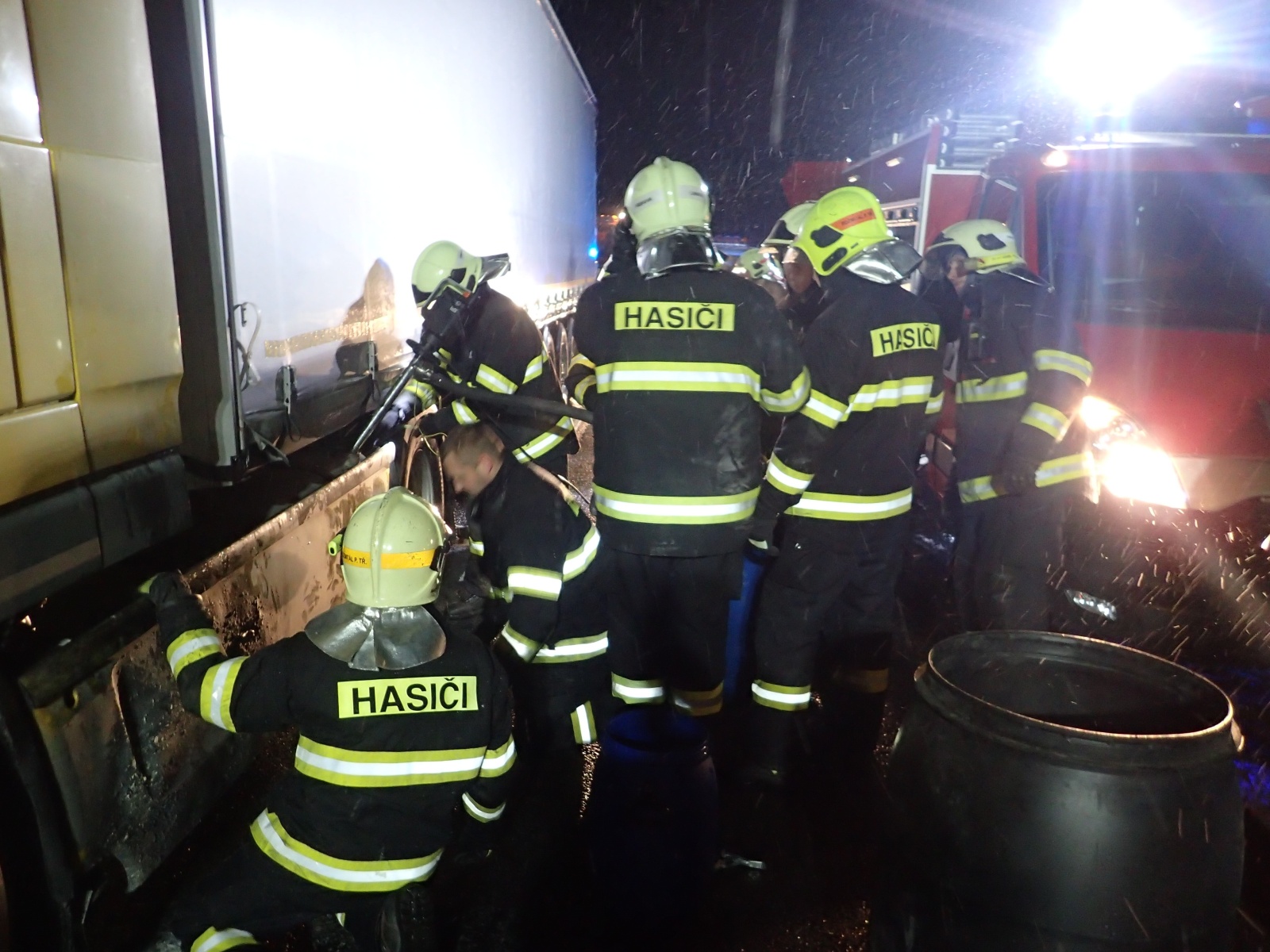 Po příjezdu k události bylo zjištěno, že se požár podařilo lokalizovat před příjezdem jednotek. Hasiči dále dohašovali motorový prostor vozidla. V důsledku požáru došlo k masivnímu úniku nafty, proto bylo na místo nutné dopravit větší množství sorbentu a sudů na přečerpání. Na místo vyjel také technický automobil z HZS Příbram a správa a údržba silnic. Komunikace musela být po celou dobu zásahu uzavřena a navíc začínala po hustém sněžení namrzat.