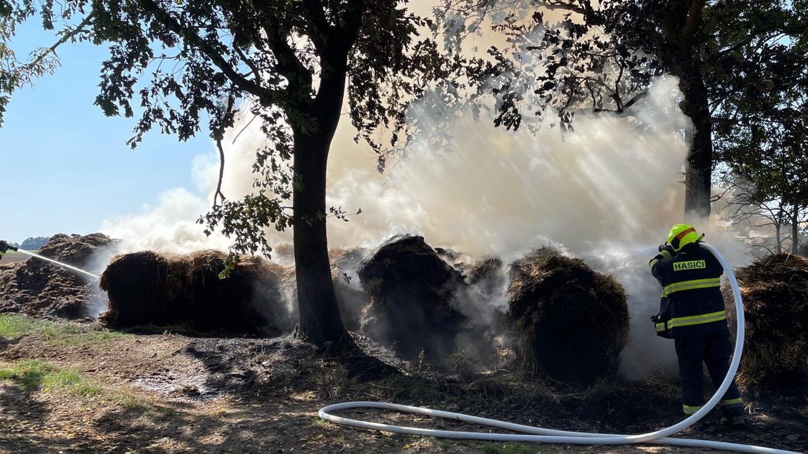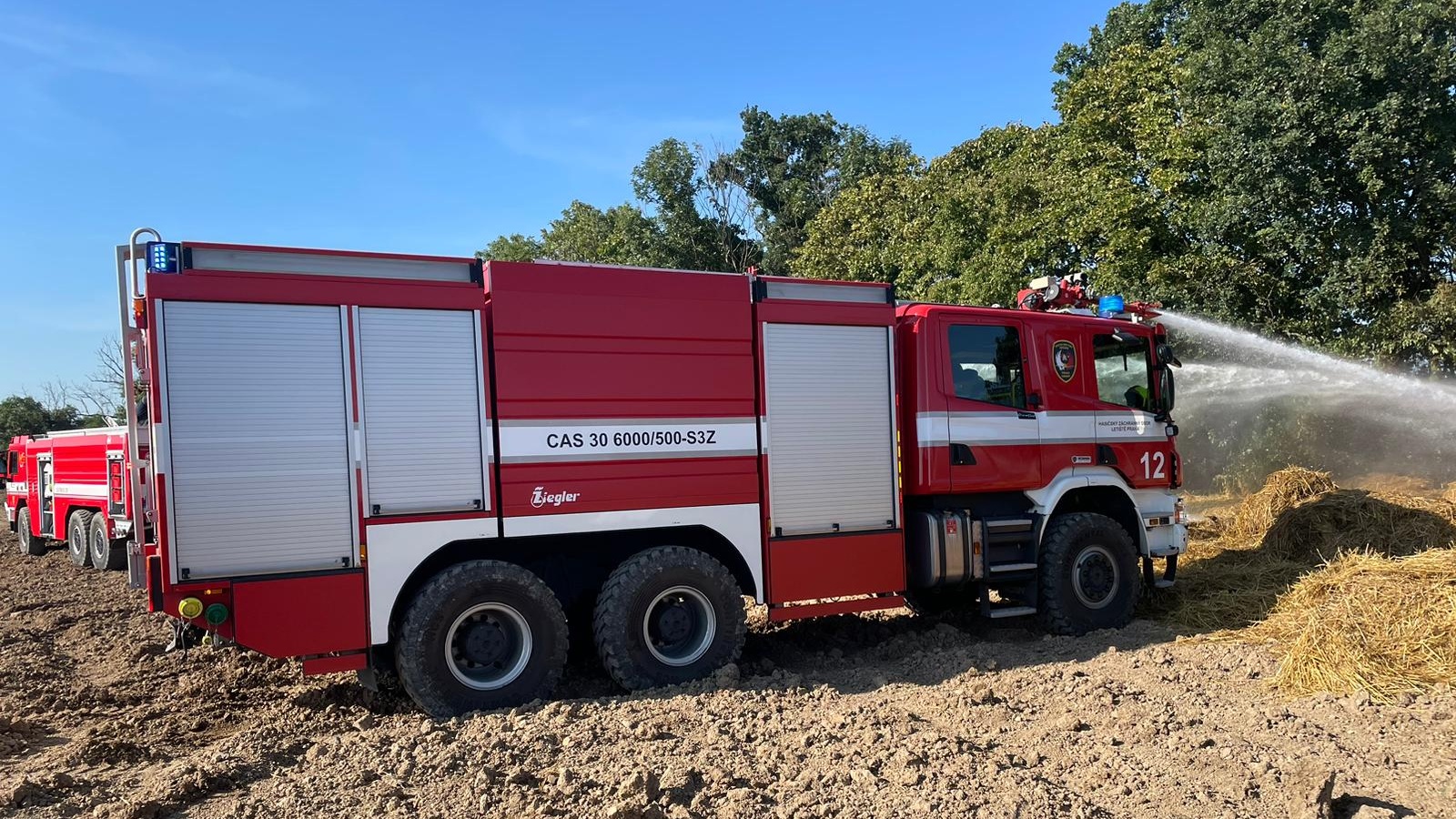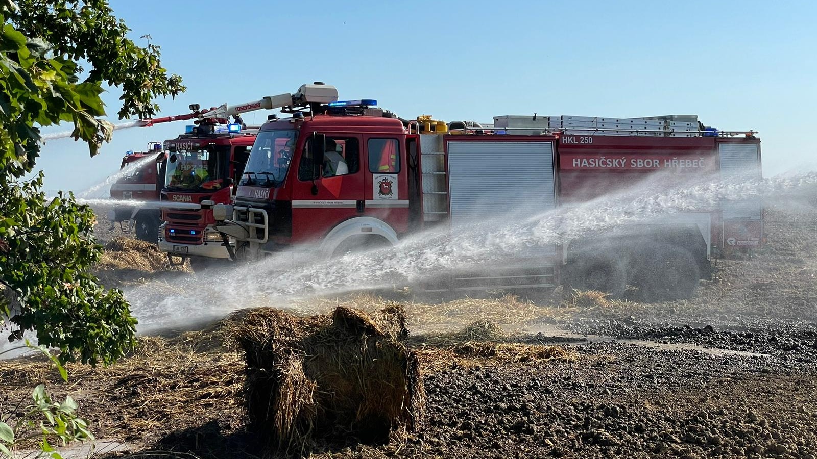 Operační důstojník k místu mimořádné události vyslal profesionální jednotku z centrální hasičské stanice Kladno a dobrovolné jednotky obcí Hostouň a Středokluky. Další oznamovatel upřesnil, že je zasaženo asi dvanáct balíků a požár se dále šíří vlivem větru, proto byly k události povolány další posilové dobrovolné jednotky Hřebeč a Kněževes, kladenský velitel čety a v rámci mezikrajské pomoci profesionální jednotka podniku Letiště Václava Havla Praha.