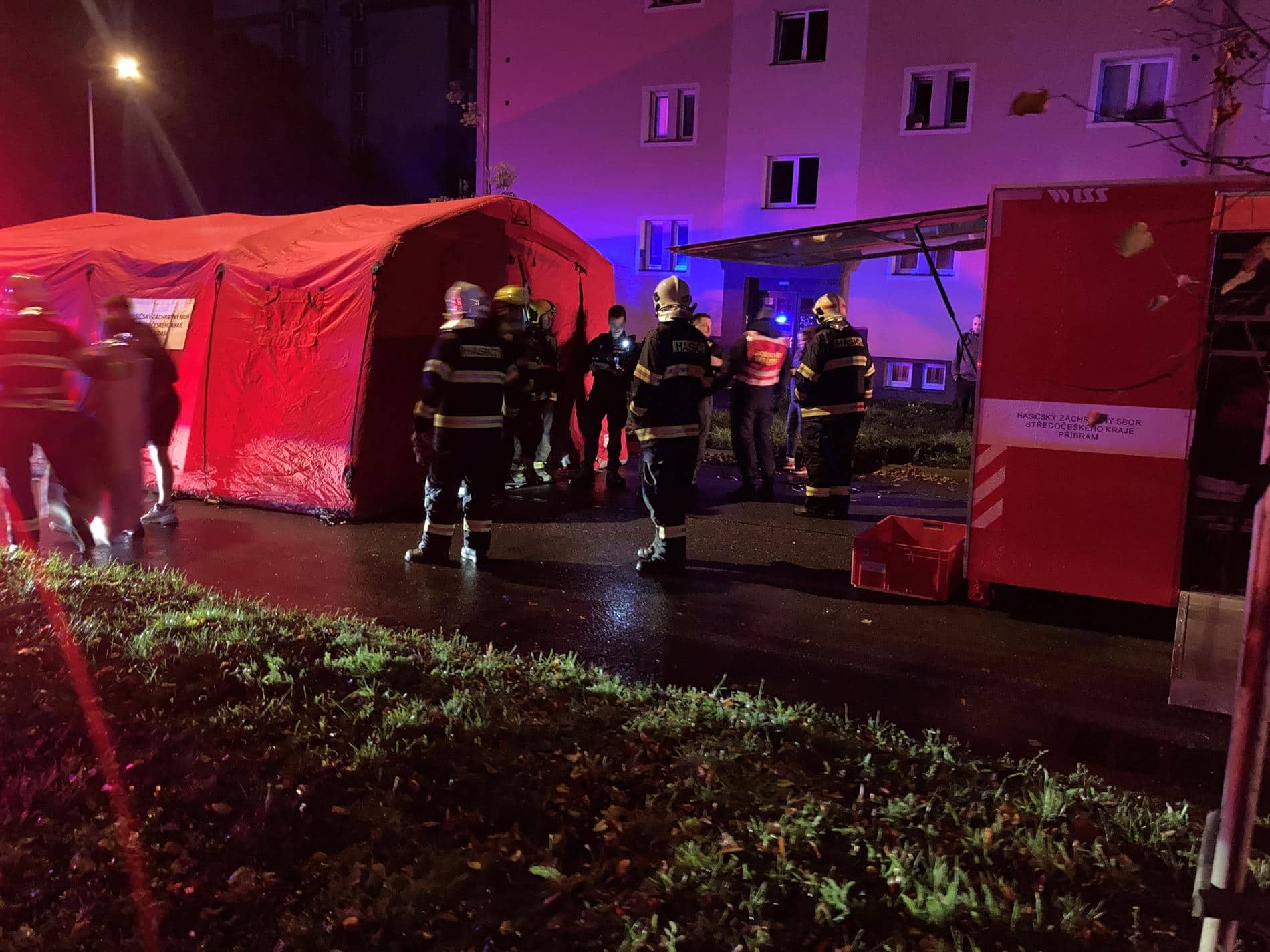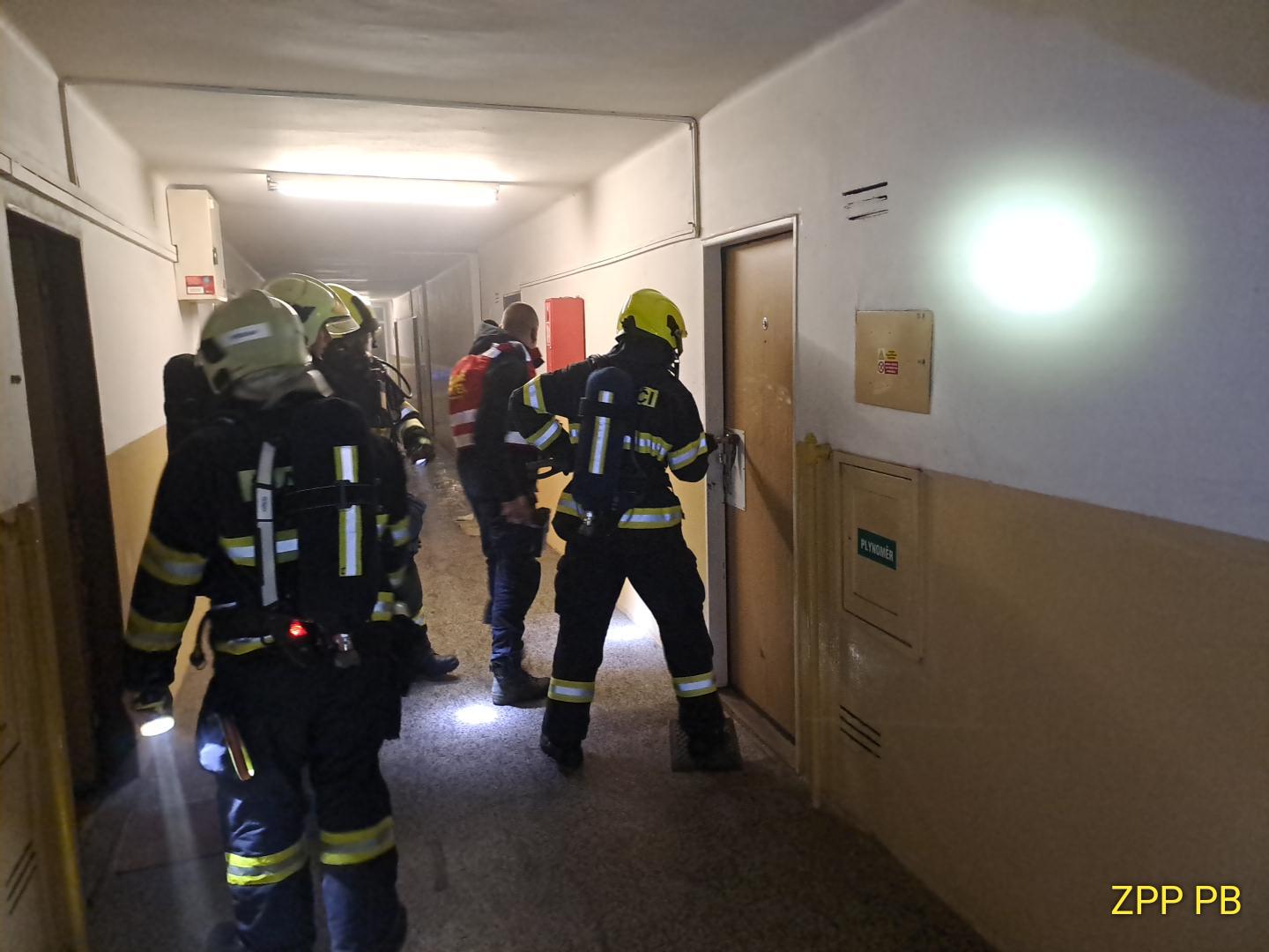 Hasiči přijali hlášení o požáru ve druhém patře bytovky v Příbrami dvacet minut před jednou hodinou ráno. Podle prvotních informací začala hořet elektrokoloběžka, která byla právě připojena k nabíječce. Na místo okamžitě vyjely profesionální i dobrovolné jednotky z okolí. První dorazila za pět minut a potvrdila silně zakouřený dům s velkým počtem obyvatel uvnitř.