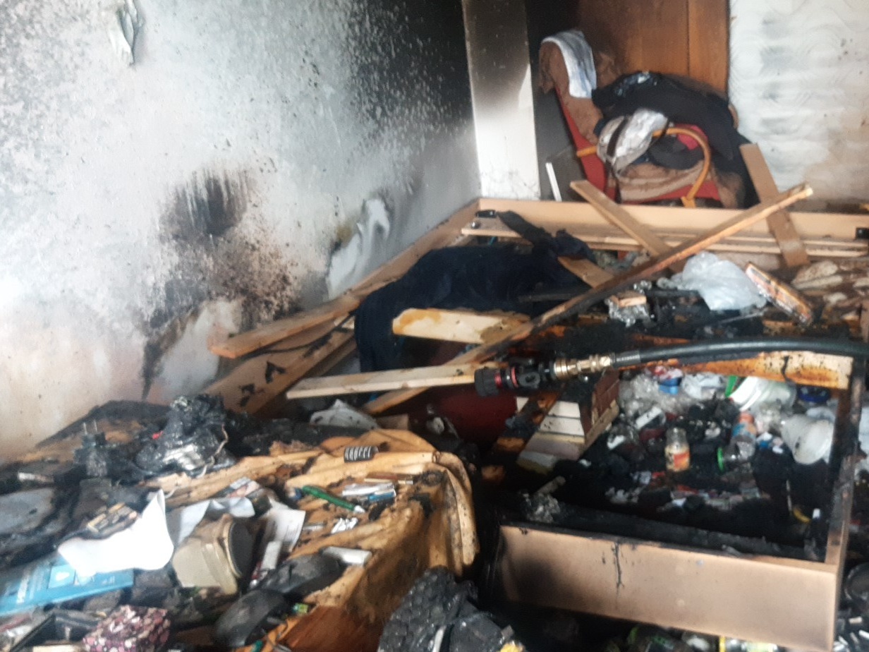 Po příjezdu na místo a provedeném průzkumu bylo potvrzeno, že kouř vychází z okna v prvním nadzemním podlaží. Jelikož nebylo jasné, zda se uvnitř bytu někdo nenachází a hrozilo nebezpečí z prodlení, provedli hasiči násilný vstup do bytu. Uvnitř nalezli jednu osobu, kterou okamžitě předali přivolané zdravotnické záchranné službě. Ta muže ošetřila, avšak transport k dalšímu ošetření odmítl. K likvidaci požáru nasadili hasiči vysokotlaký vodní proud. Zároveň museli evakuovat z domu deset lidí, z toho jednoho za pomoci vyváděcí masky.