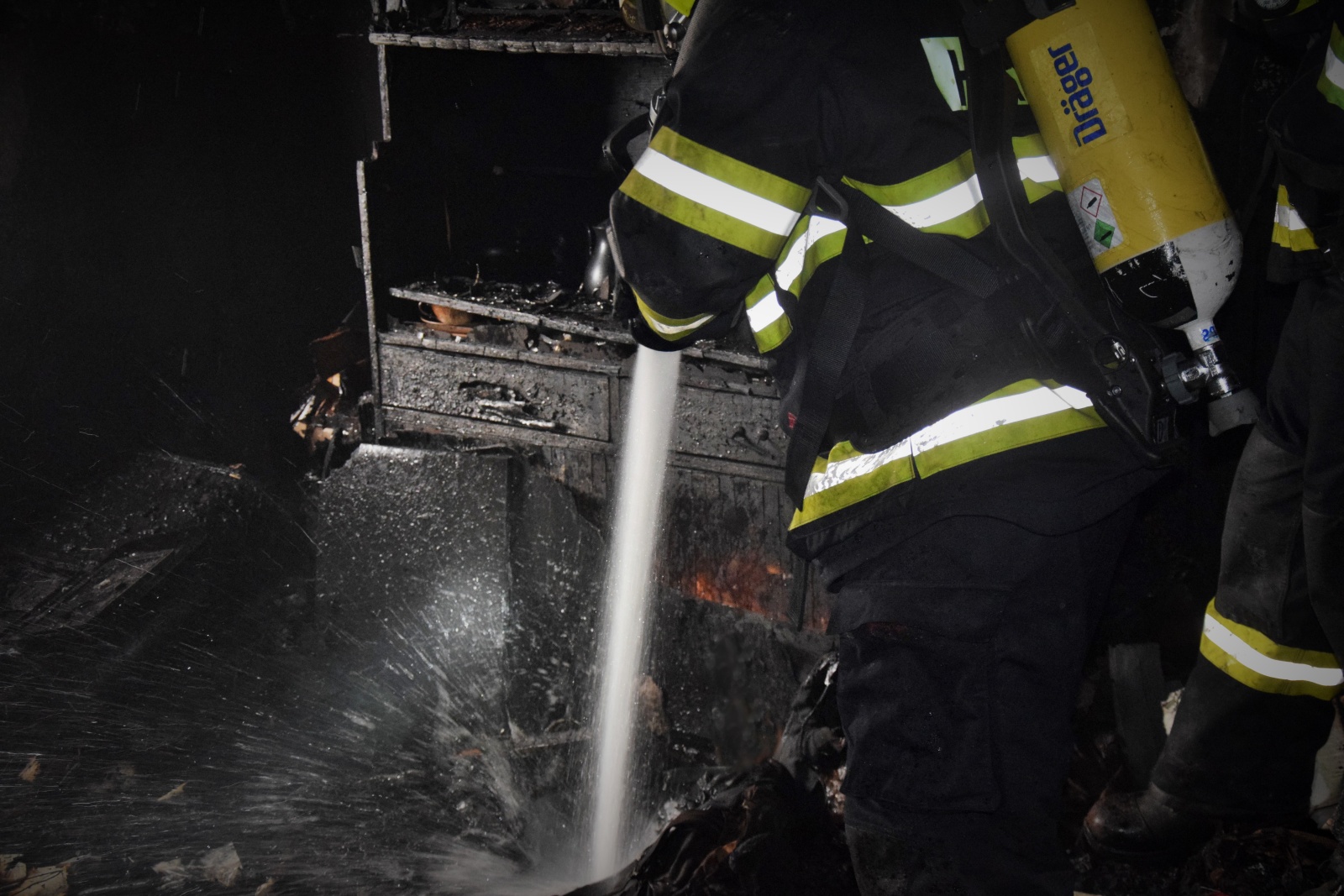 Hasiči pomocí dopravního vedení s rozdělovačem a připojenými třemi C proudy započali ihned s hasebními pracemi. Během hašení byly z chaty vyneseny tři dvoukilové a tři desetikilové propanbutanové láhve, které hasiči museli začít ochlazovat. Při dalším průzkumu rozlehlé soustavy objektů a přístavků bylo nalezeno tělo uživatele chaty, který nejevil známky života, což následně i potvrdil lékař zdravotnické záchranné služby.
