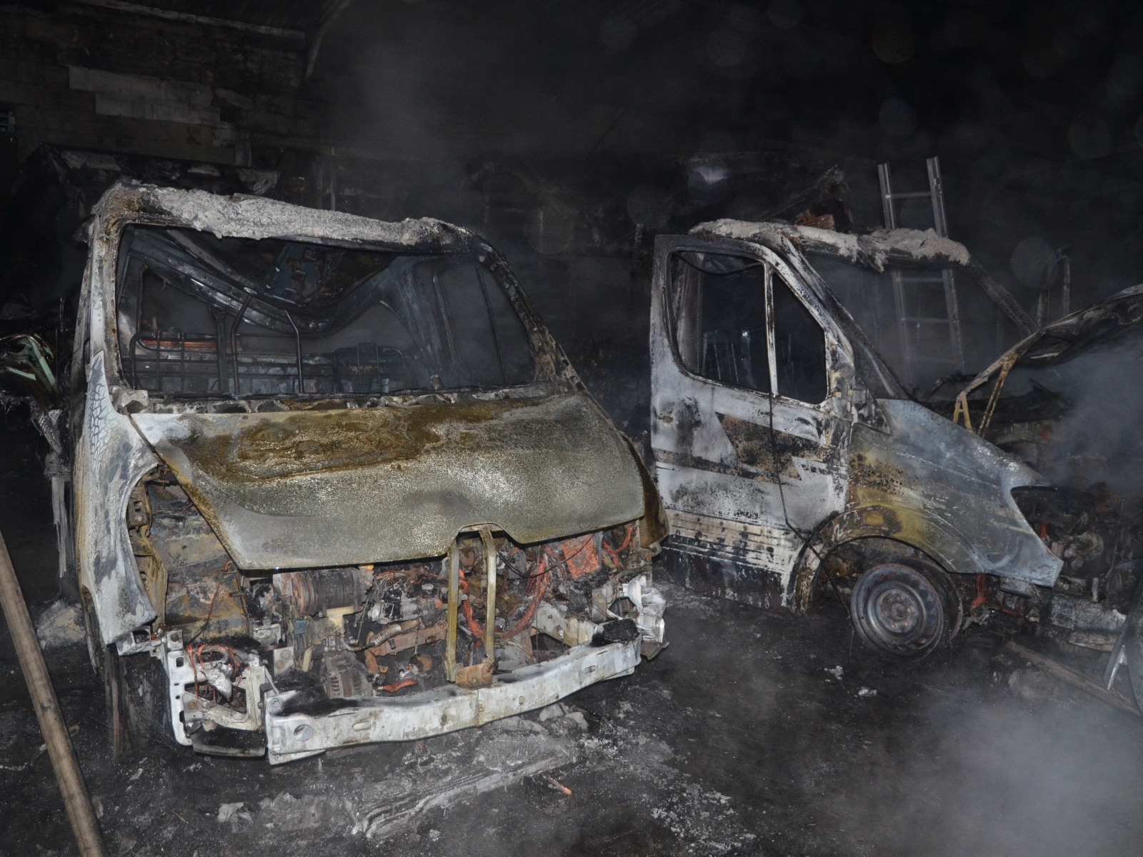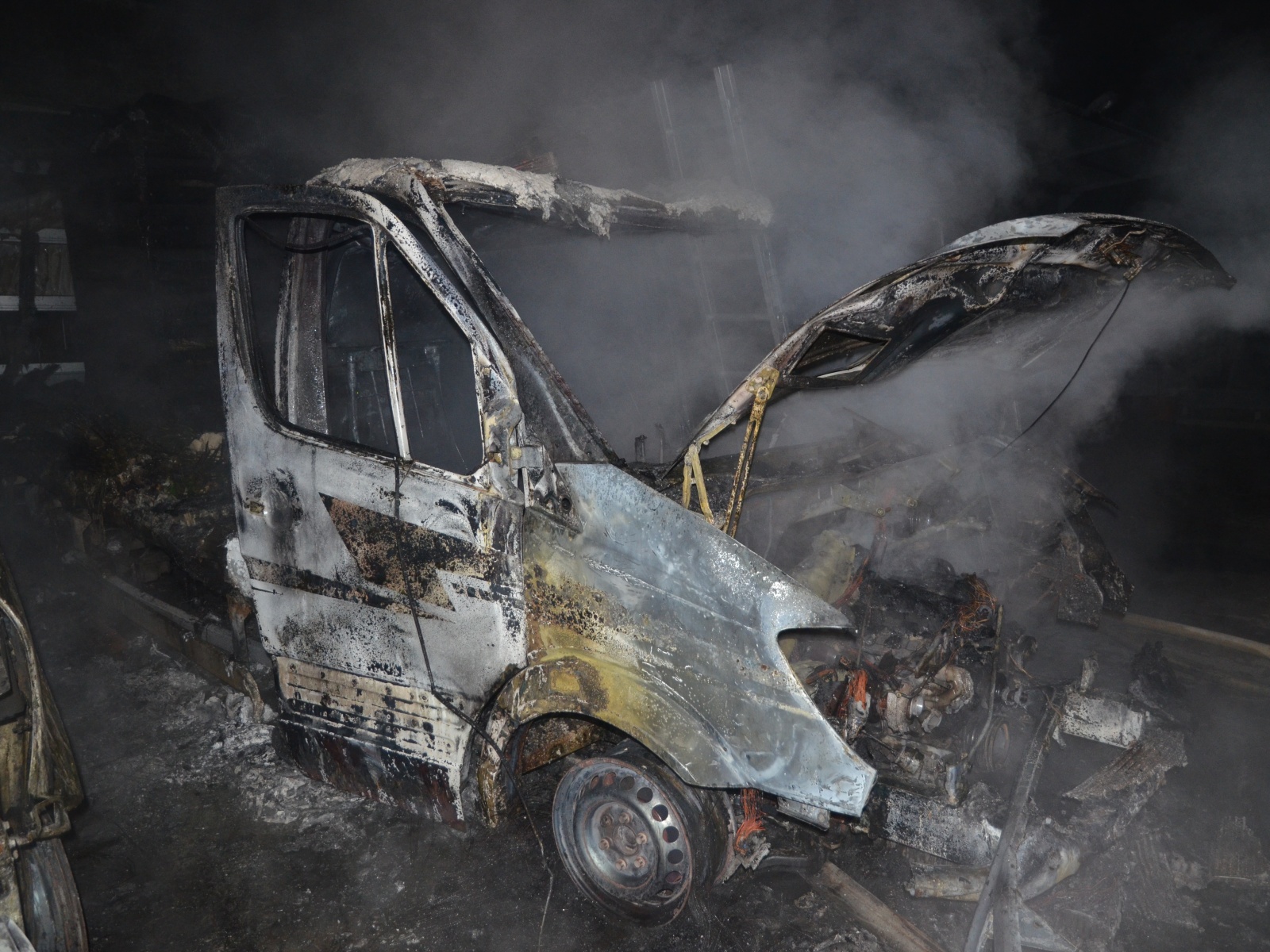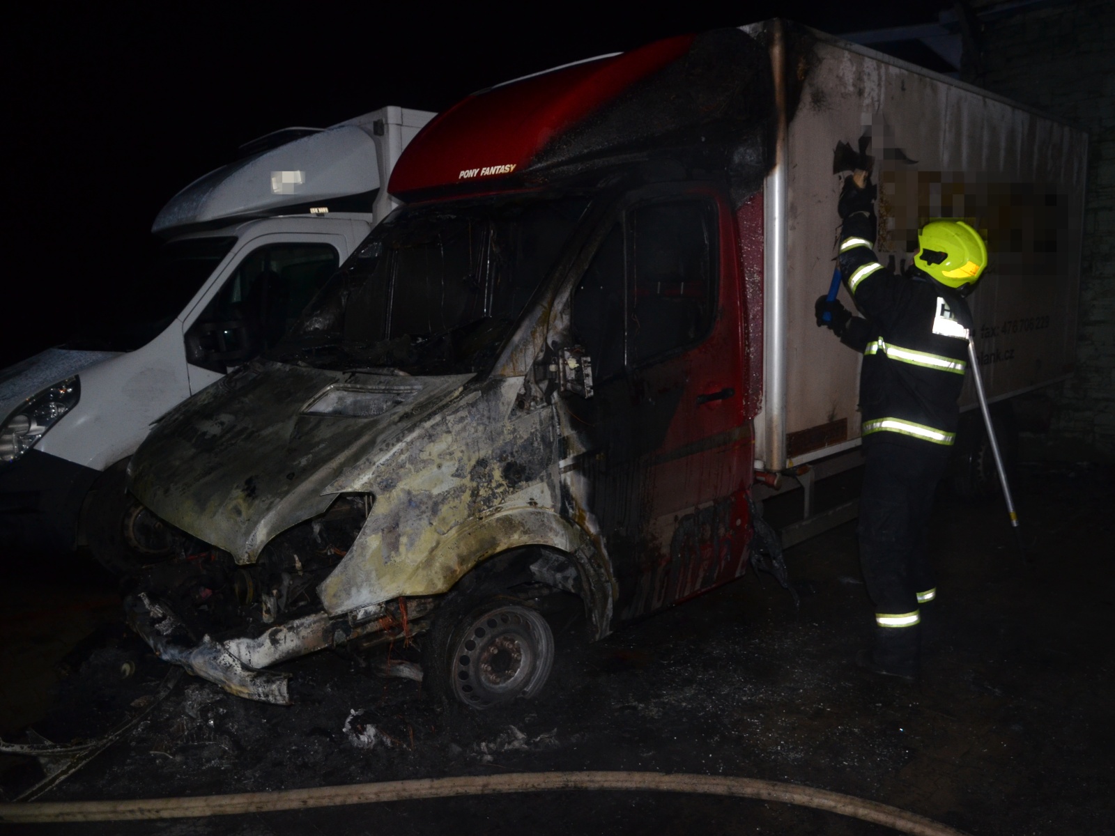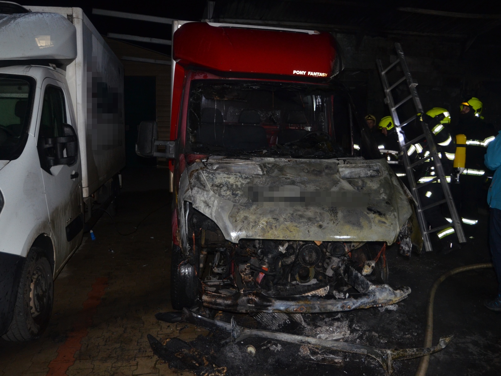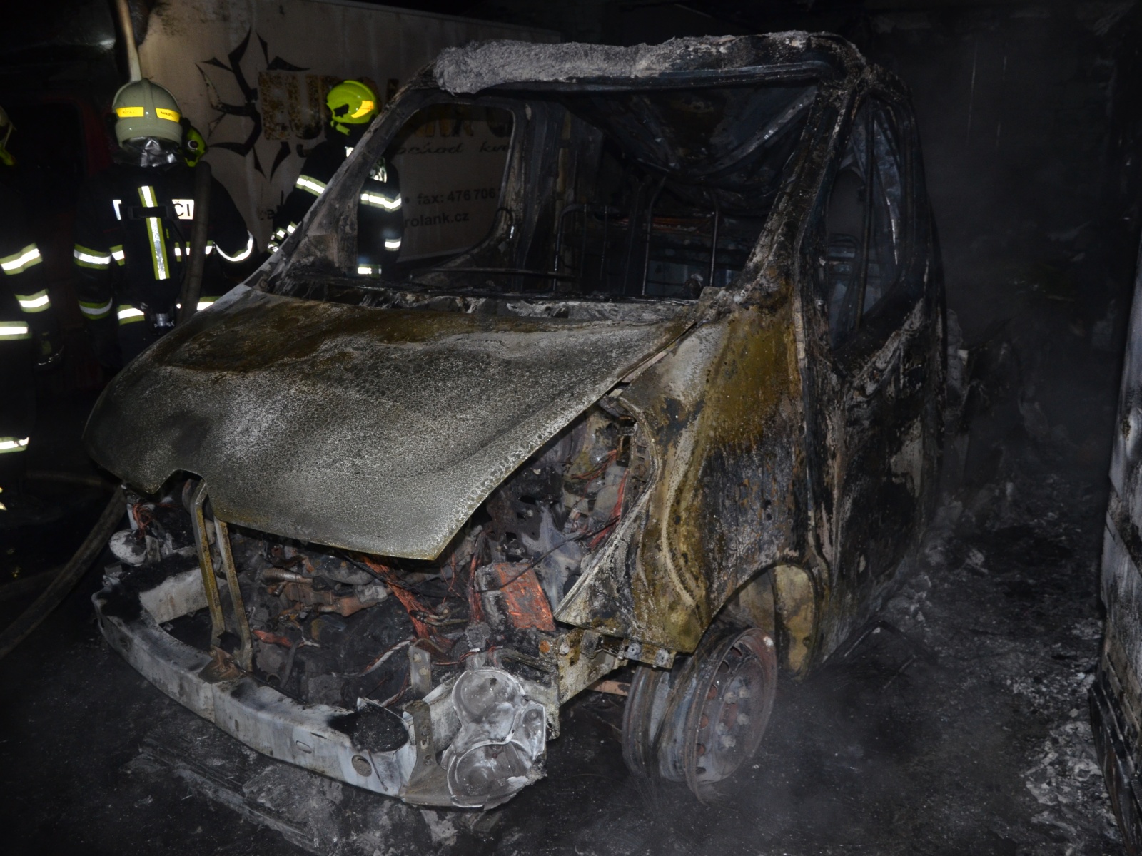 Po příjezdu prvních jednotek na místo bylo zjištěno, že požár je v uzavřeném areálu, do kterého se hasiči dostali za pomoci žebříku. Následný průzkum ukázal, že hoří tři dodávky pod přístřeškem. Zasahující hasiči tak museli zdolat nejen požár, ale zároveň ochlazovat okolí, aby uchránili co nejvíce hodnot. Následně byl proveden násilný vstup do garáže objektu, protože bylo nutné za pomoci termokamery zkontrolovat stropní konstrukci.