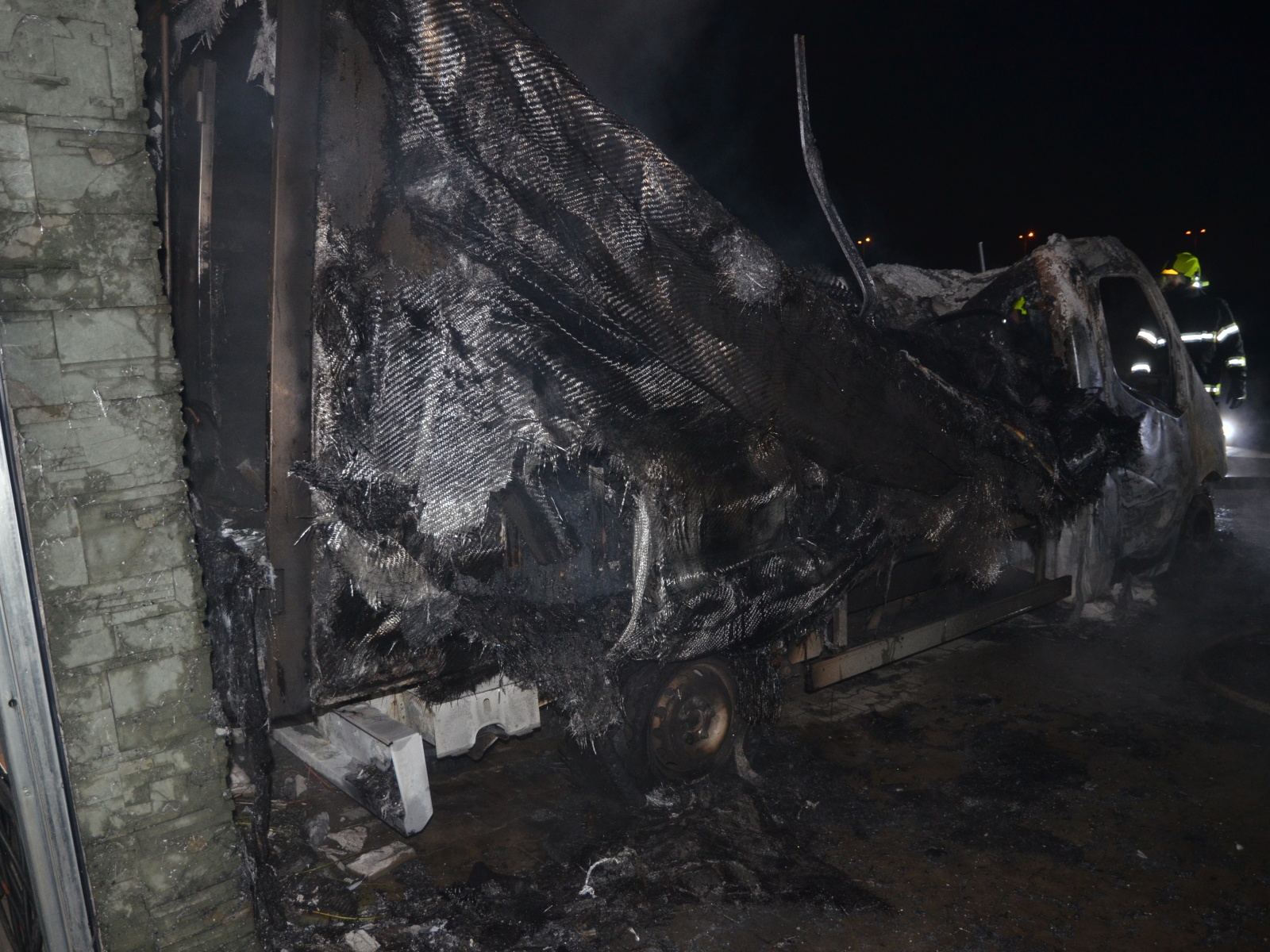 Ve čtvrt na dvanáct nahlásil velitel zásahu lokalizaci, asi půl hodiny po půlnoci pak likvidaci. Hasičský vyšetřovatel na místě zjistil, že požárem byly poškozeny nejen tři dodávkové vozy, ale také fasáda budovy, část plechové střechy a elektrická výsuvná vrata. Škoda byla předběžně stanovena na tři miliony korun, majetek ve stejné výši se hasičům podařilo uchránit. Příčinou vzniku požáru byla technická závada na jednom ze zaparkovaných vozidel.