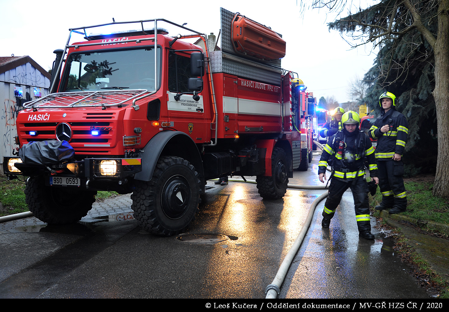 Podle poplachového plánu operační důstojník vyslal na místo čtyři jednotky hasičů. Už během jízdy k události nechal velitel zásahu prostřednictvím operačního střediska vyhlásit druhý stupeň poplachu, protože od požáru vycházel mohutný černý dým, který byl vidět na vzdálenost několika kilometrů. Dalo se tak předpokládat, že požár bude většího rozsahu.