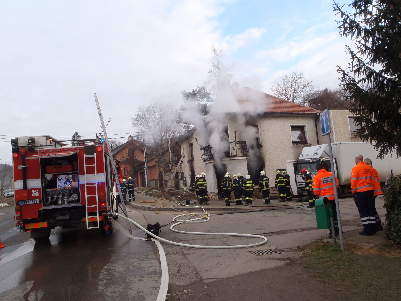 V době příjezdu první jednotky, která se na místo dostavila za deset minut od ohlášení, byl dům plný kouře a požár už zasáhl celou přízemní část.