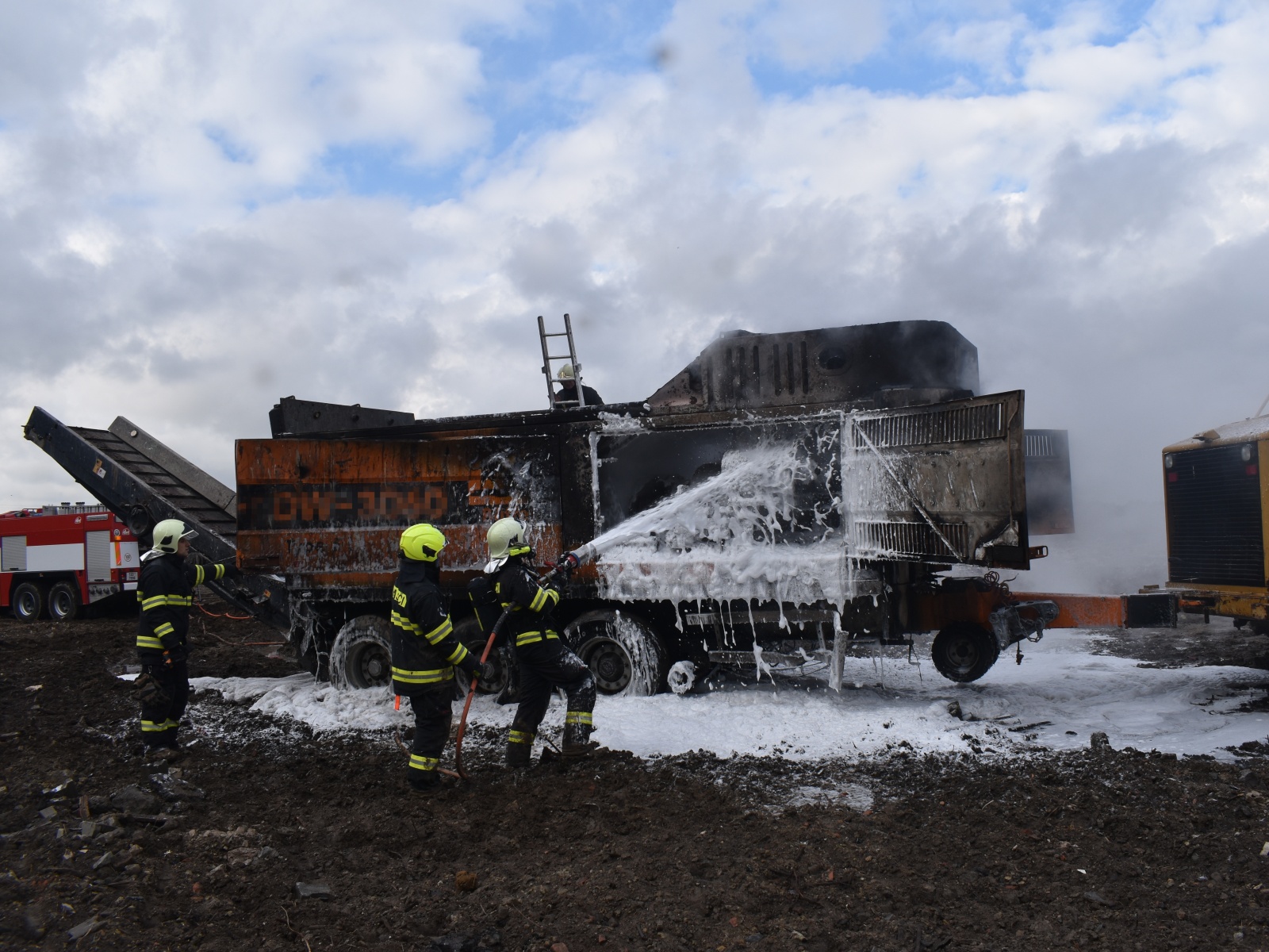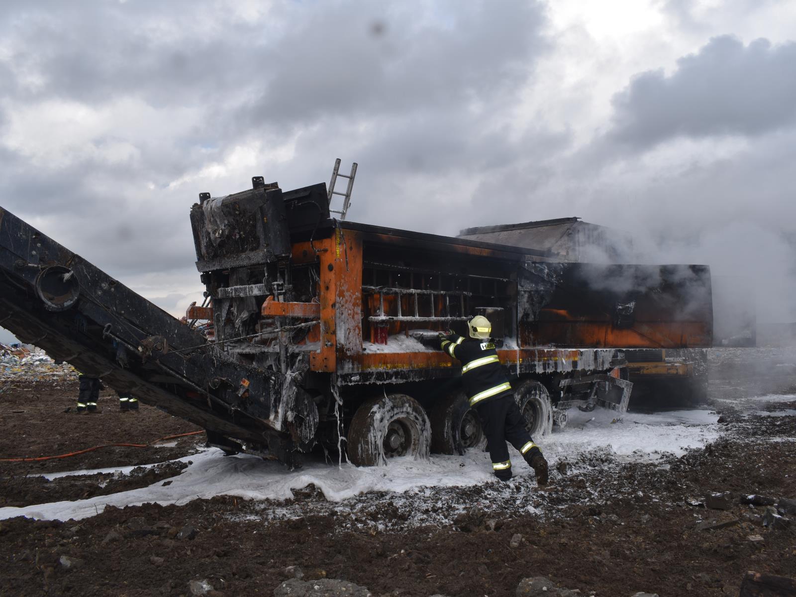 Po příjezdu dalších jednotek byl drtič uhašen pěnovým proudem a později chlazen dvěma vysokotlakými proudy. Za necelou čtvrt hodinu od příjezdu první jednotky na místo události se podařilo dostat požár pod kontrolu a byl lokalizován. Za další hodinu byla dohašena všechna skrytá ohniska a velitel zásahu mohl nahlásit likvidaci.