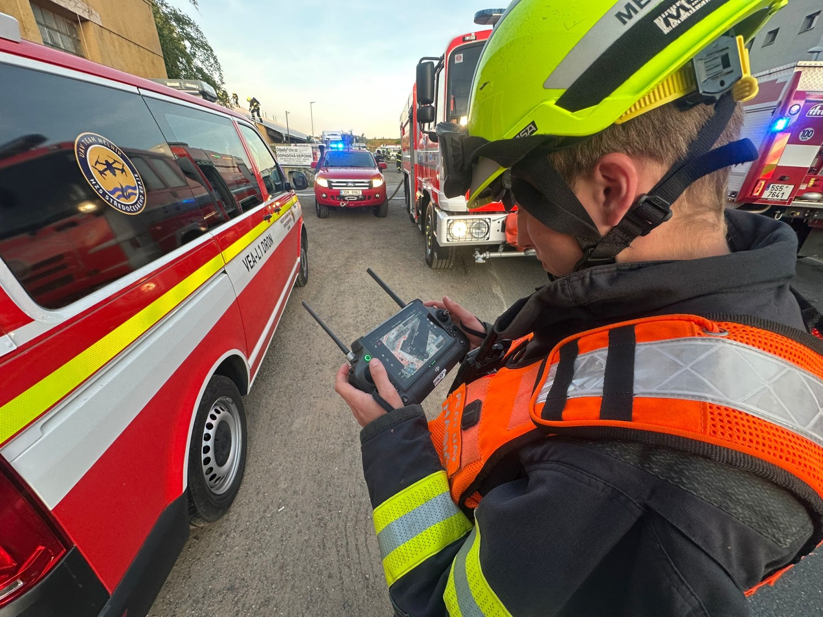 Jednotky zahájily útok z více stran. Zatímco část hasičů vnikla přímo do objektu a snažila se zastavit šíření ohně zevnitř, další zasahovali z výšky pomocí plošin. Na střeše nasadili speciální zařízení CCS Cobra – vysokotlaký hasicí a řezací systém, který dokáže vodním paprskem proříznout i plech a okamžitě chladit skrytá ohniska.