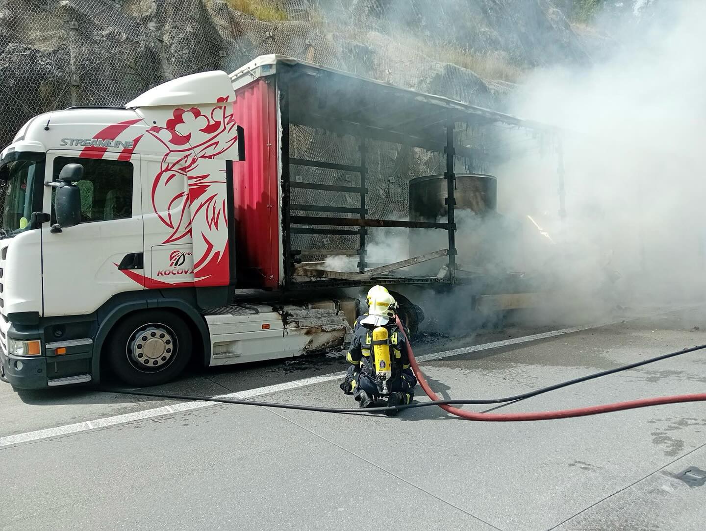 V sobotu 9. srpna 2025 krátce po 13:00 vypukl na 25,5. kilometru dálnice D1 požár kamionu s návěsem. Při příjezdu hasičů byl návěs zcela zachvácen plameny.