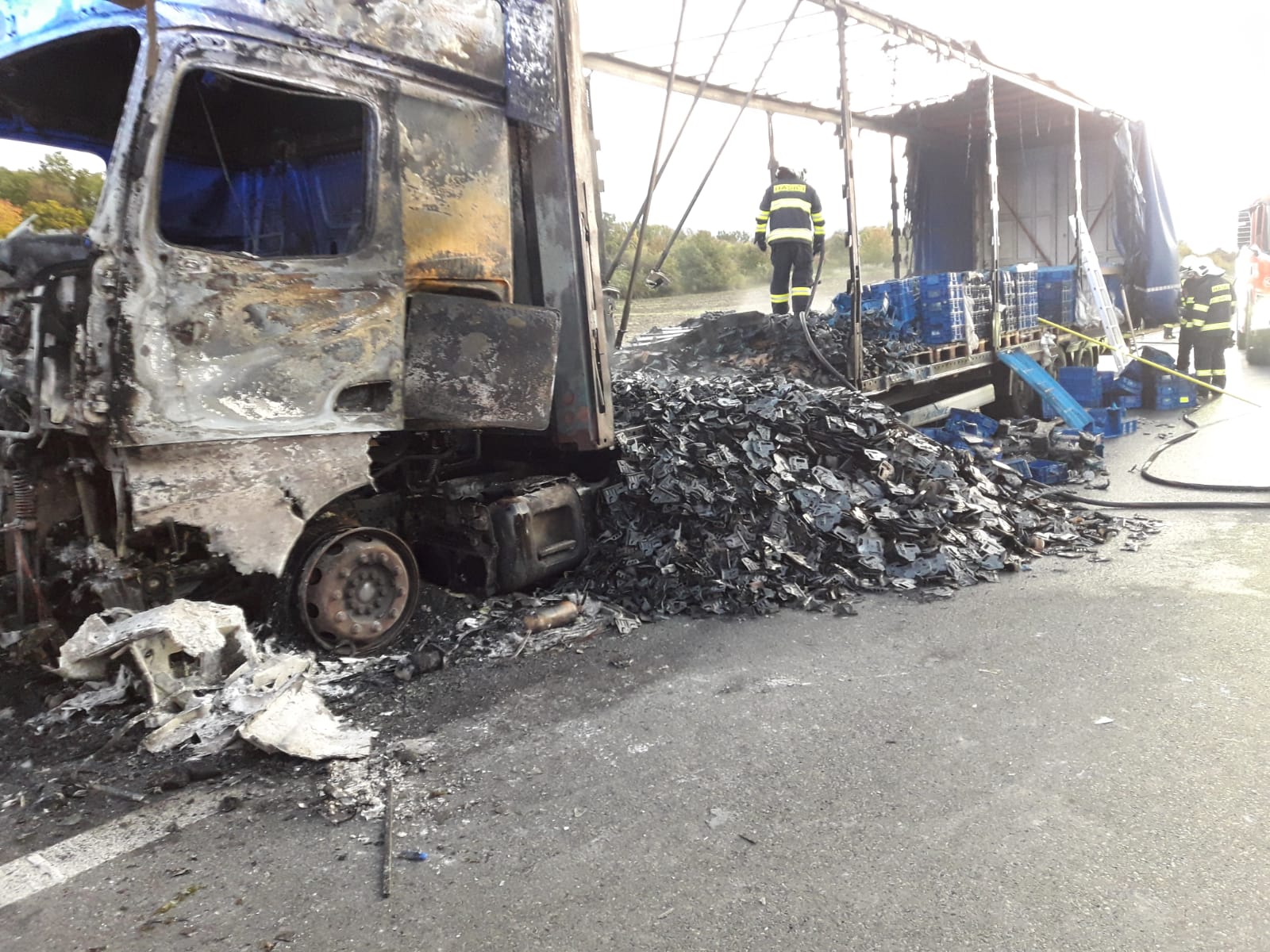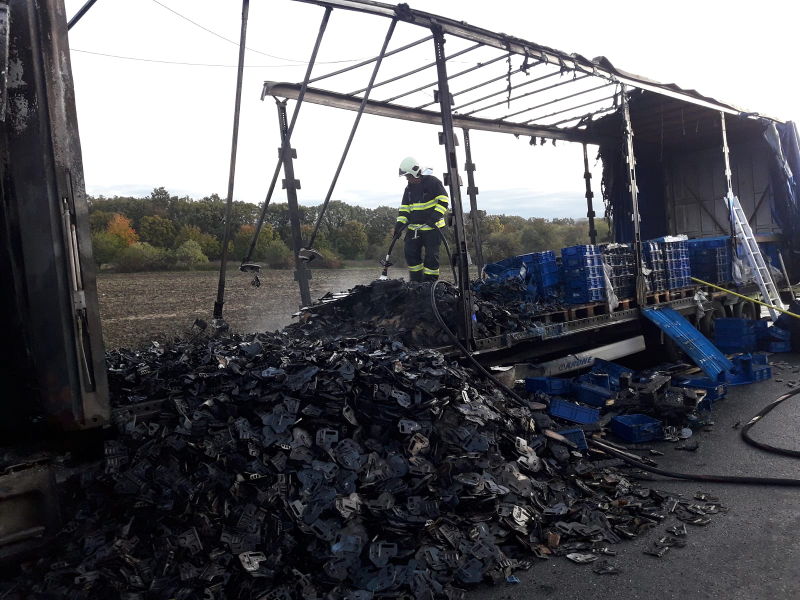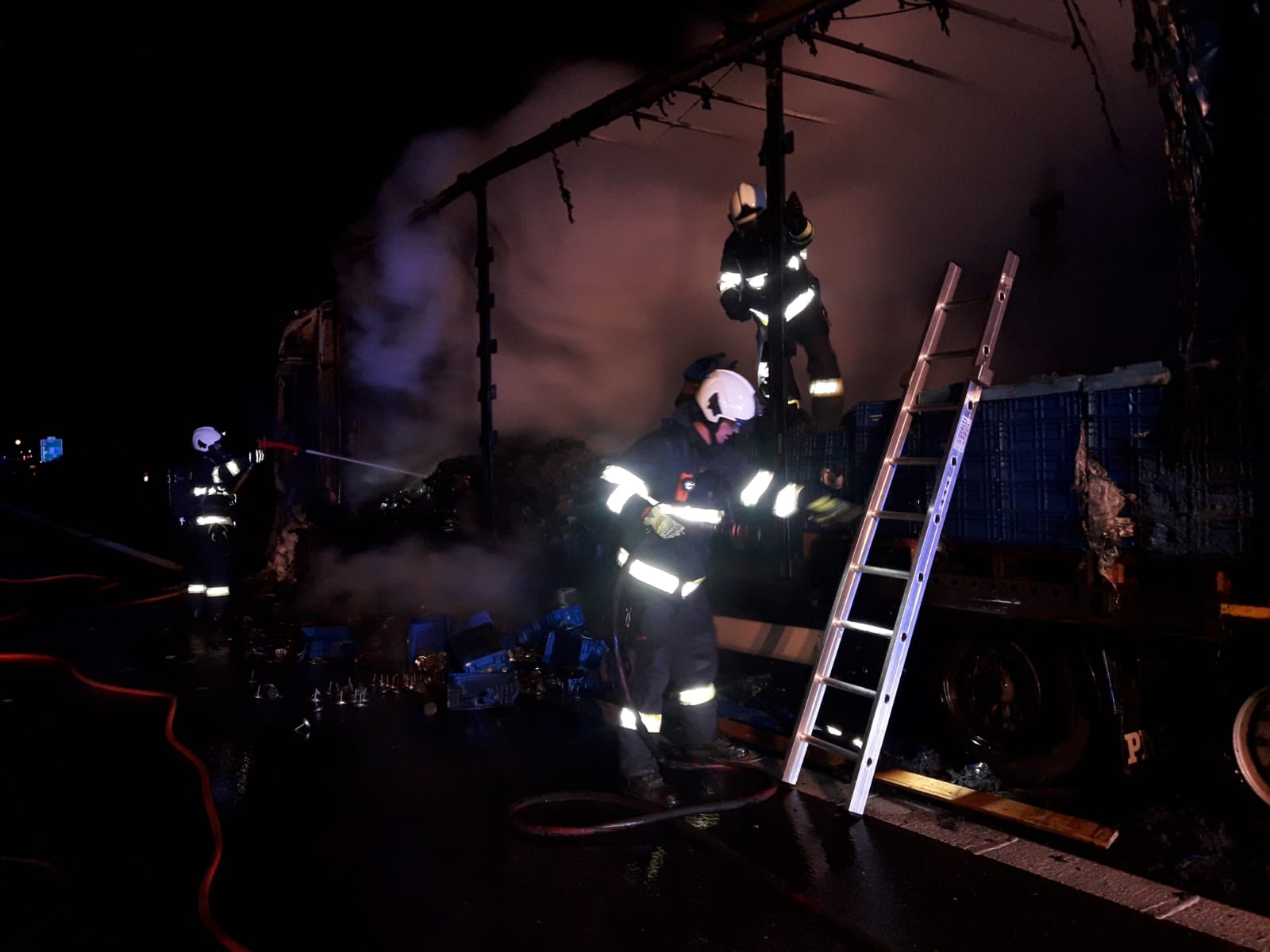 Před příjezdem hasičů se požár stihl rozšířit na celou kabinu tahače a asi dvě třetiny návěsu. Hasiči za pomoci jednoho vysokotlakého a dvou C proudů měli požár pod kontrolou za necelou půlhodinu a velitel zásahu ohlásil jeho lokalizaci. Zároveň bylo zjištěno, že kamion převážel v plastových přepravkách kovové náhradní díly do osobních automobilů. Část nákladu se hasičům podařilo z návěsu vyskladnit.