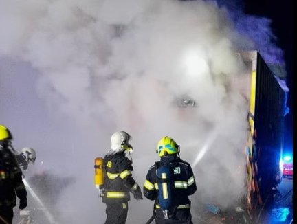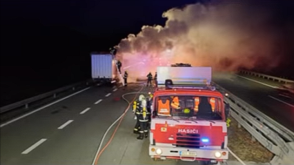 Požár kola návěsu zastavil dopravu na dálnici. Hasiči varují před blokováním uličky