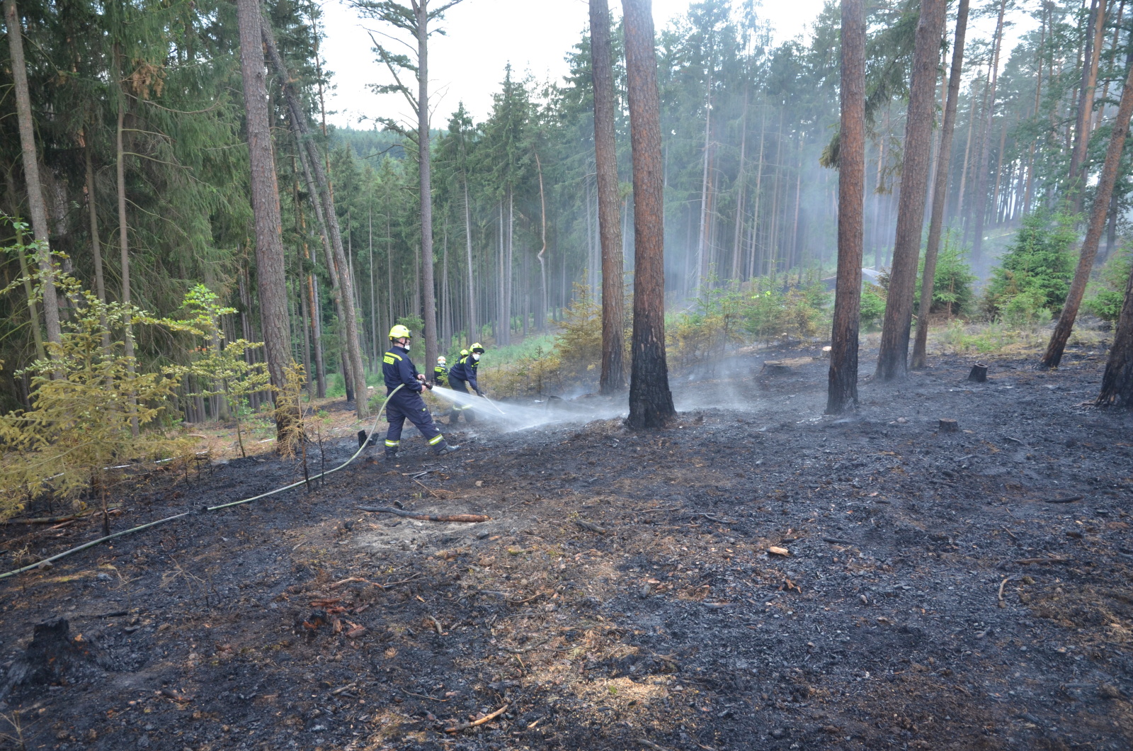 Ve čtvrtek, 31. května 2%18 dopoledne bylo požářiště zkontrolováno termokamerou, která objevila v hrabance schovaných asi deset menších ohnisek, která byla ihned hašena jedním D proudem. Po domluvě s revírníkem bude hlídání požářiště pokračovat minimálně do pátečního večera.