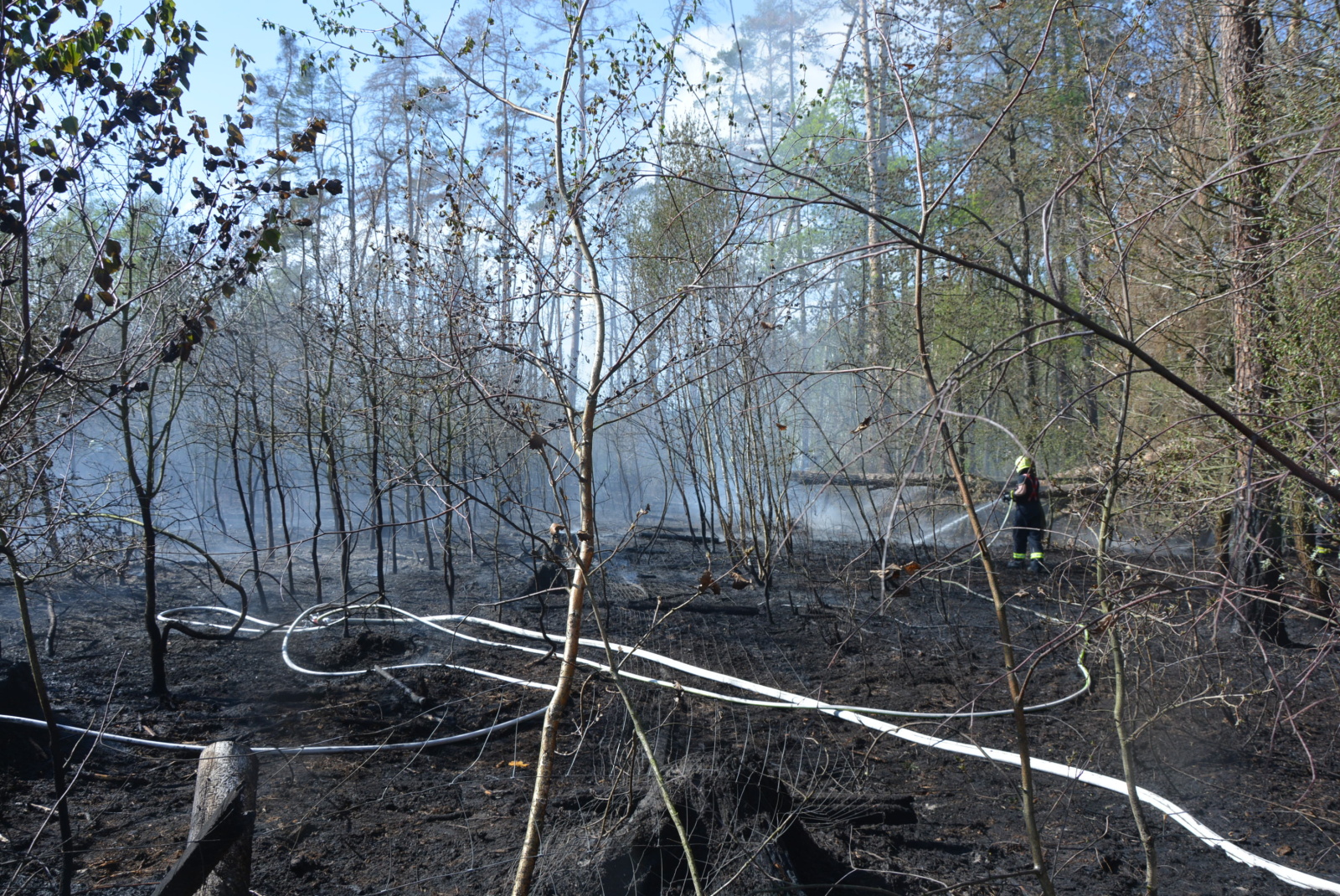 Požár smíšeného lesa a lesní školky byl v terénu špatně přístupném pro těžkou hasičskou techniku. V první fázi zásahu bylo nutné v krátkém čase rozvinout více než 300 metrů hadic. Pro plynulé zásobování hasební vodou velitel organizoval dopravu pomocí cisternových automobilů. Za hodinu náročného zásahu byl požár pod kontrolou. Dále pokračovalo důsledné dohašovaní lesního podrostu, aby byla uhašena i všechna ohniska skrytá pod zemí. K jejich vyhledávání hasiči používali termokamery.