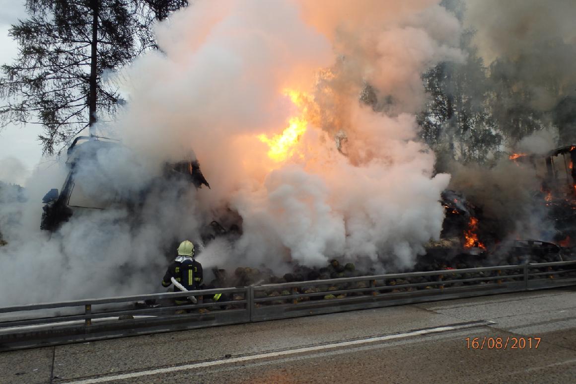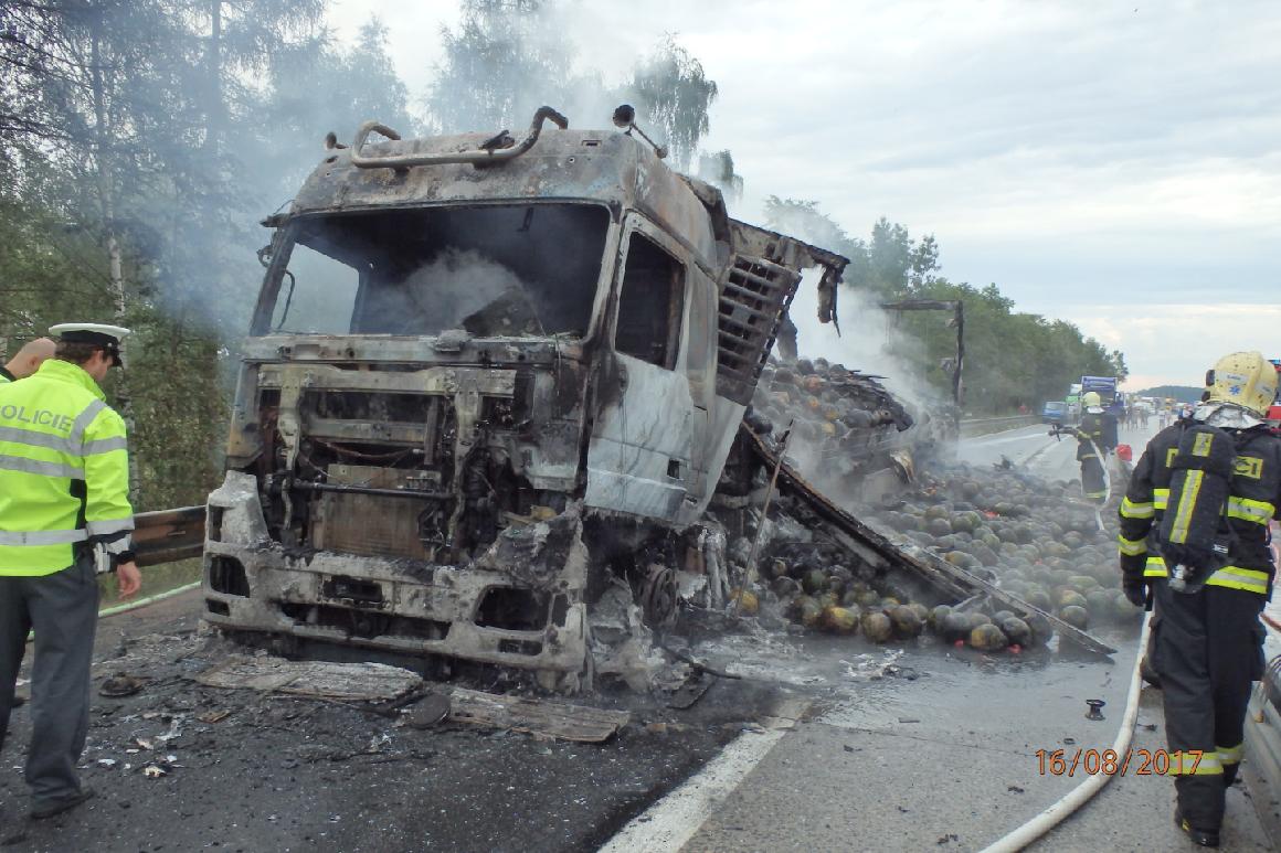 Rozvinutý požár nákladního automobilu na dálnici D1, 36. kilometr ve směru na Prahu byl na tísňovou linku HZS Středočeského kraje nahlášen ve středu 16. srpna 2017 v 07:07 hod. Na místo byly ihned vyslány 4 jednotky hasičů – profesionální ze stanic Benešov a Vlašim a dobrovolní z obcí Trhový Štěpánov a Divišov.