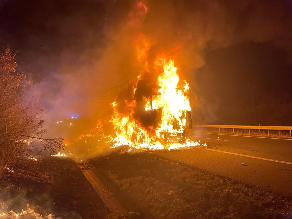 V úterý 16. listopadu v půl páté ráno byl středočeským hasičům oznámen požár nákladního automobilu na plzeňské dálnici D5 tři kilometry za Prahou.