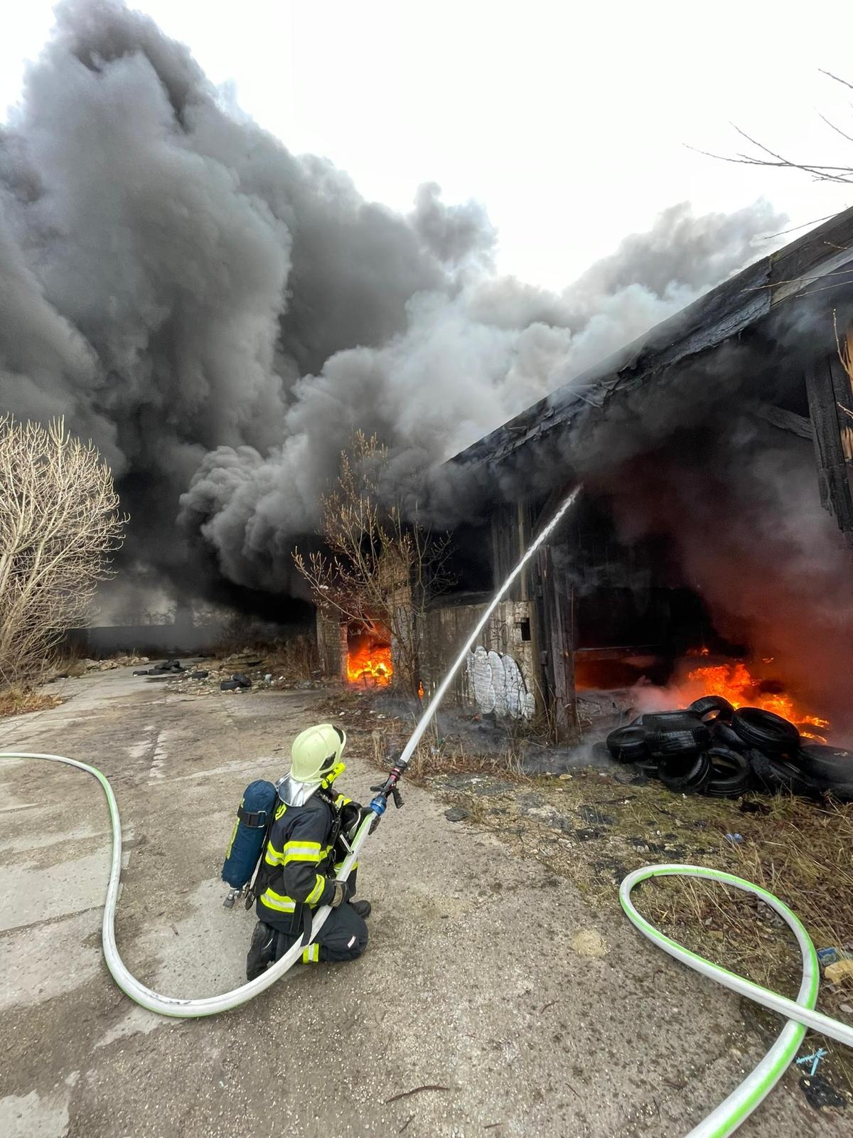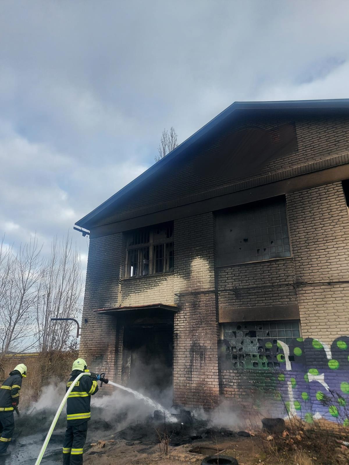 K uhašení ohnisek byly použity čtyři vodní proudy a díky rychlému zásahu se požár nerozšířil na okolní budovy. Po uhašení požáru hasiči zjistili, že došlo k poškození střešní konstrukce dřevěné budovy, ve které byly pneumatiky uskladněny a že se v této konstrukci oheň nadále šíří. Vzhledem k tomu, že všechny budovy byly určeny k demolici, se velitel zásahu po dohodě se zástupci majitele rozhodl část dřevěného přístřešku strhnout, aby zabránil šíření požáru a případnému samovolnému zřícení konstrukce.