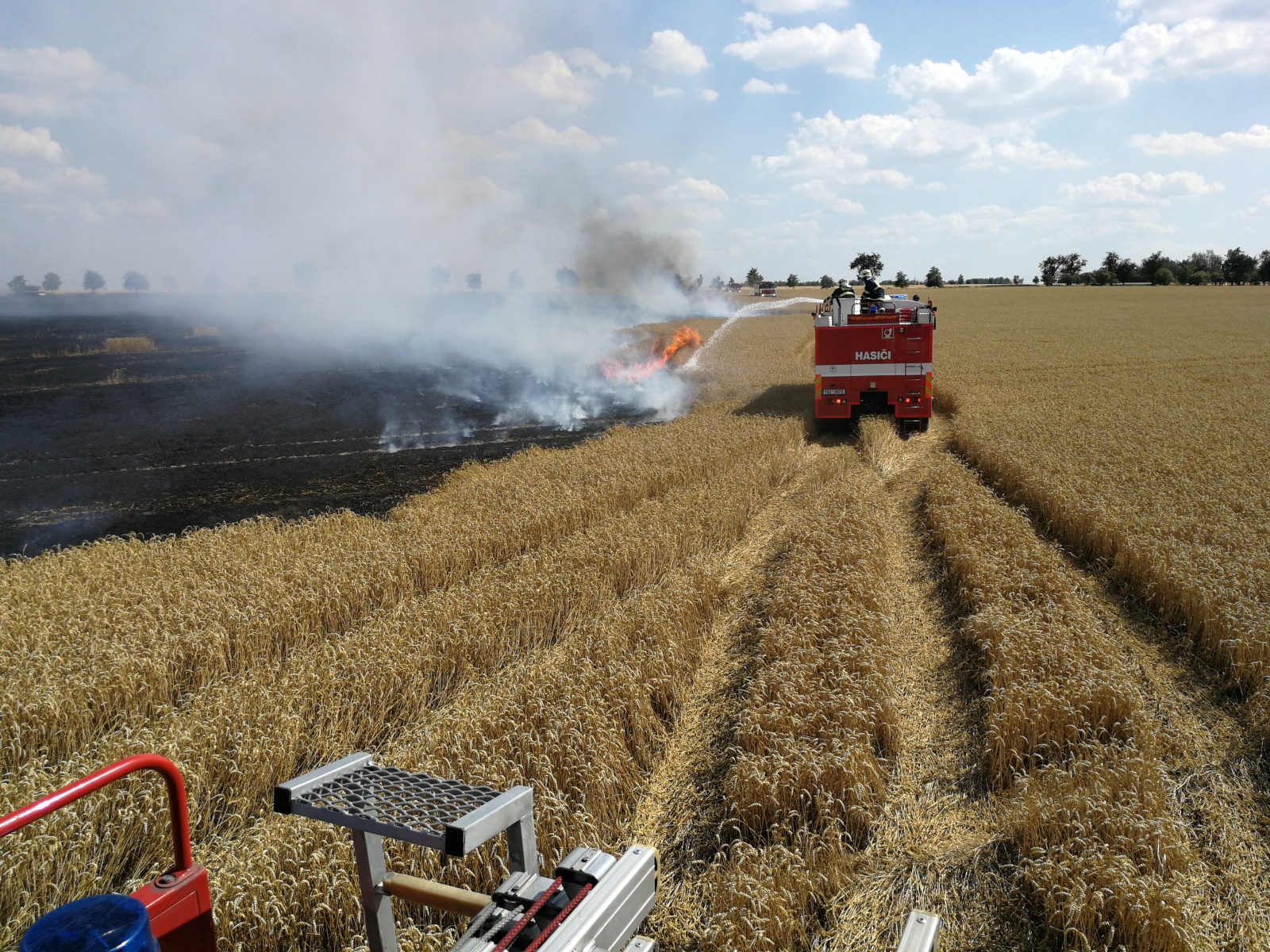 Informaci o rozsáhlém požáru pole se vzrostlým obilím u obce Hostivice v okrese Praha-západ přijala tísňová linka středočeských hasičů ve čtvrtek 19. července v 15.23 hodin.