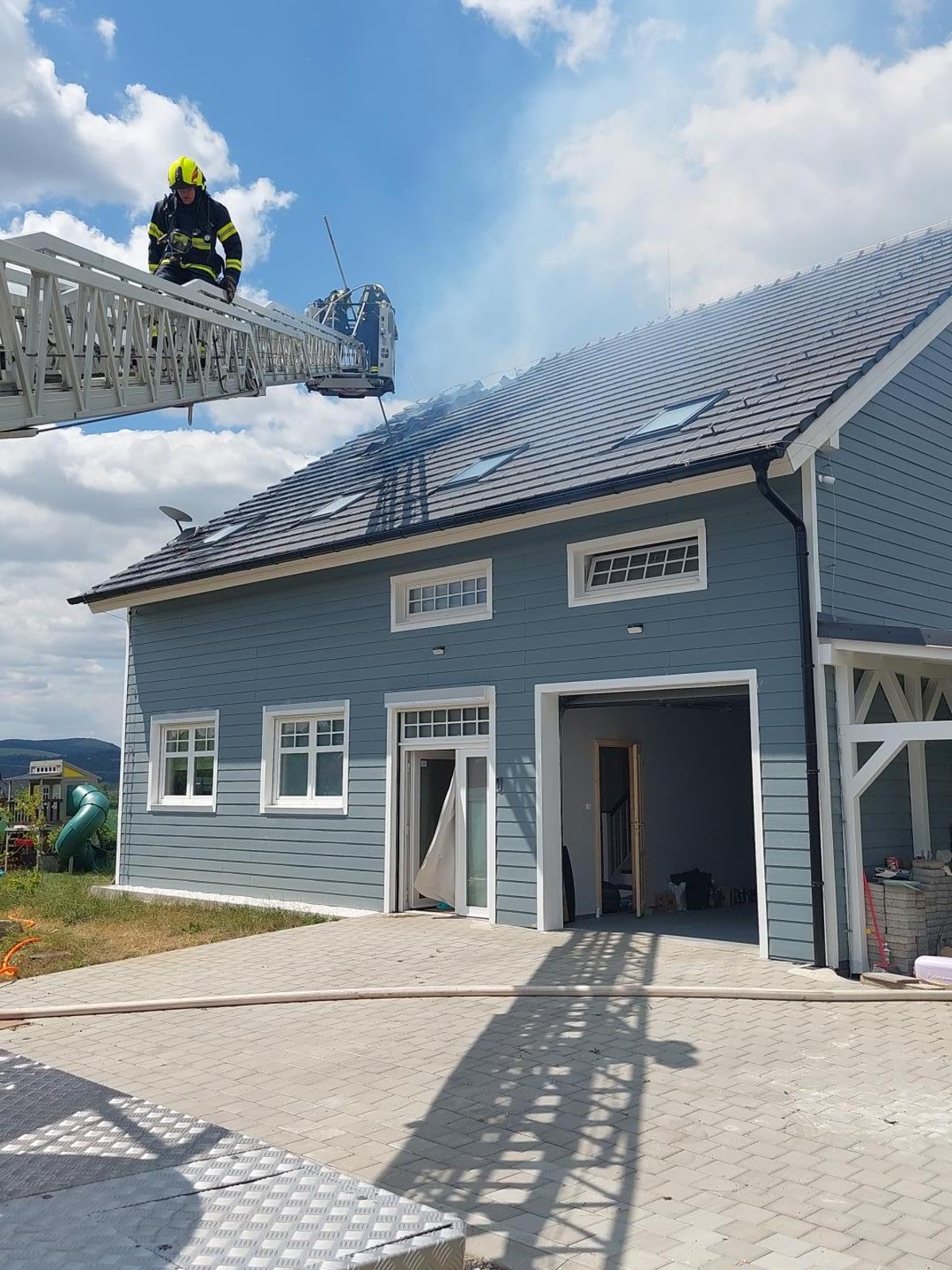 V neděli 2. července krátce po třinácté hodině přijalo Krajské operační a informační středisko Hasičského záchranného sboru Středočeského kraje informaci o požáru terasy a rodinného domu v obci Hatě, která patří pod Skuhrov na Berounsku.