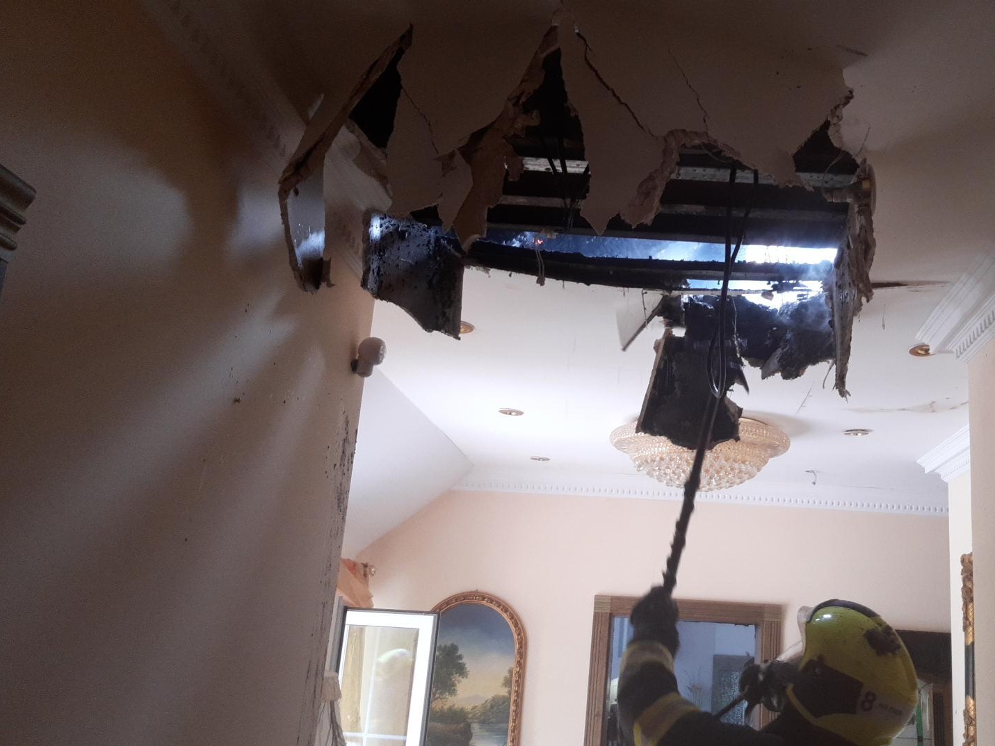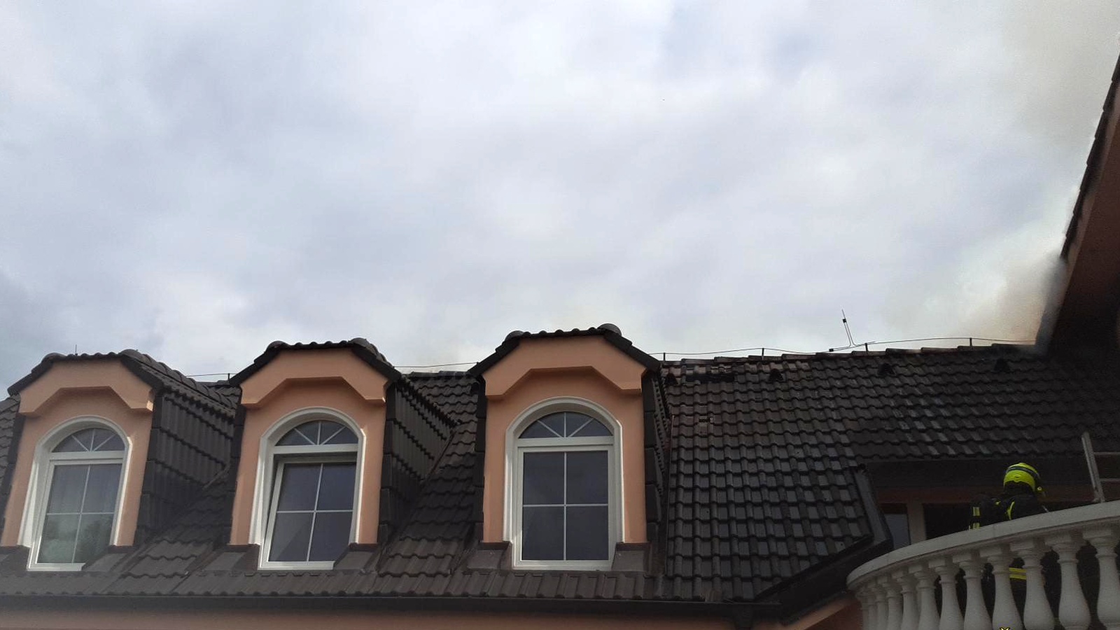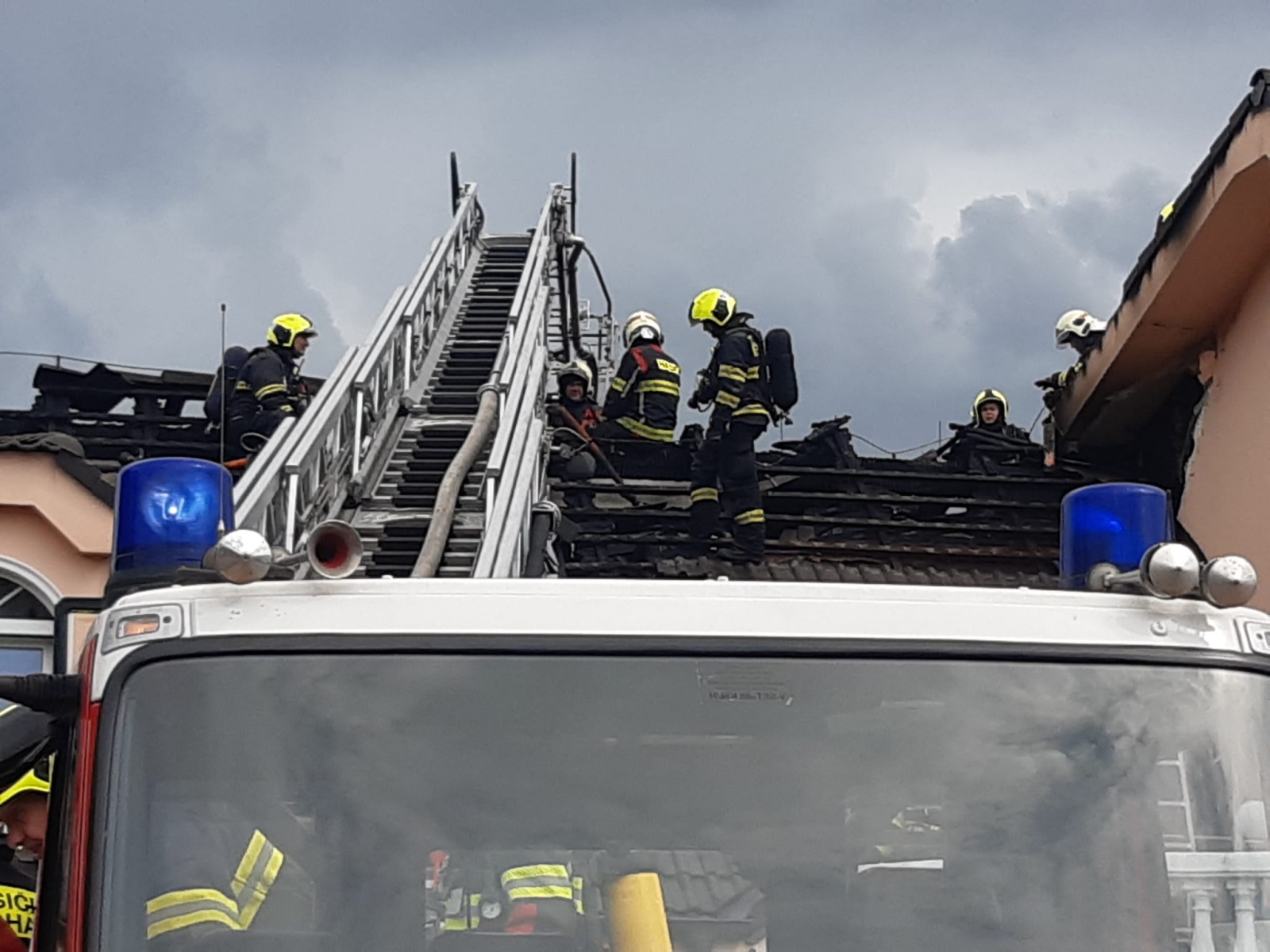 Po příjezdu první jednotky a rychlém průzkumu byl potvrzen požár podkroví přibližně poloviny rozlehlého domu. Na části střechy byly nainstalované fotovoltaické panely, které se podařilo odpojit, současně byl do domu uzavřen přívod elektrického proudu. Hasiči zahájili zásah dvěma C proudy vnitřkem budovy a připravovali nasazení dalšího proudu z výškové techniky. Zároveň začali s rozebíráním krytiny a střešní konstrukce, aby se lépe dostali k ohnisku požáru.