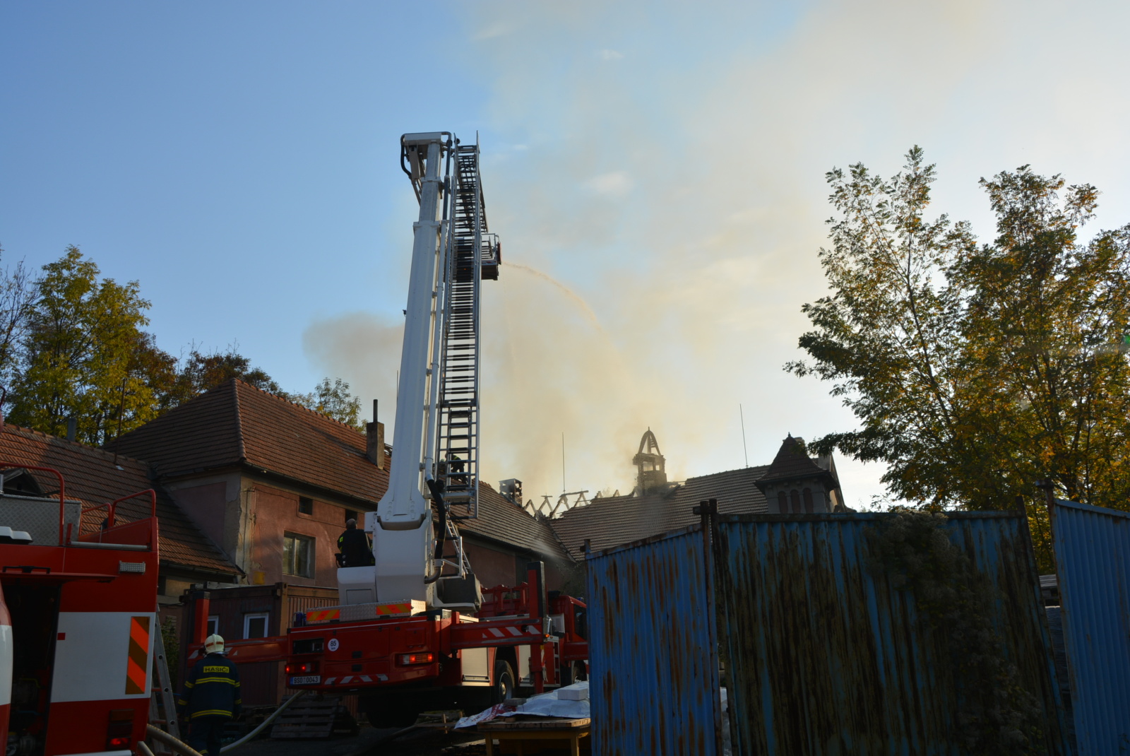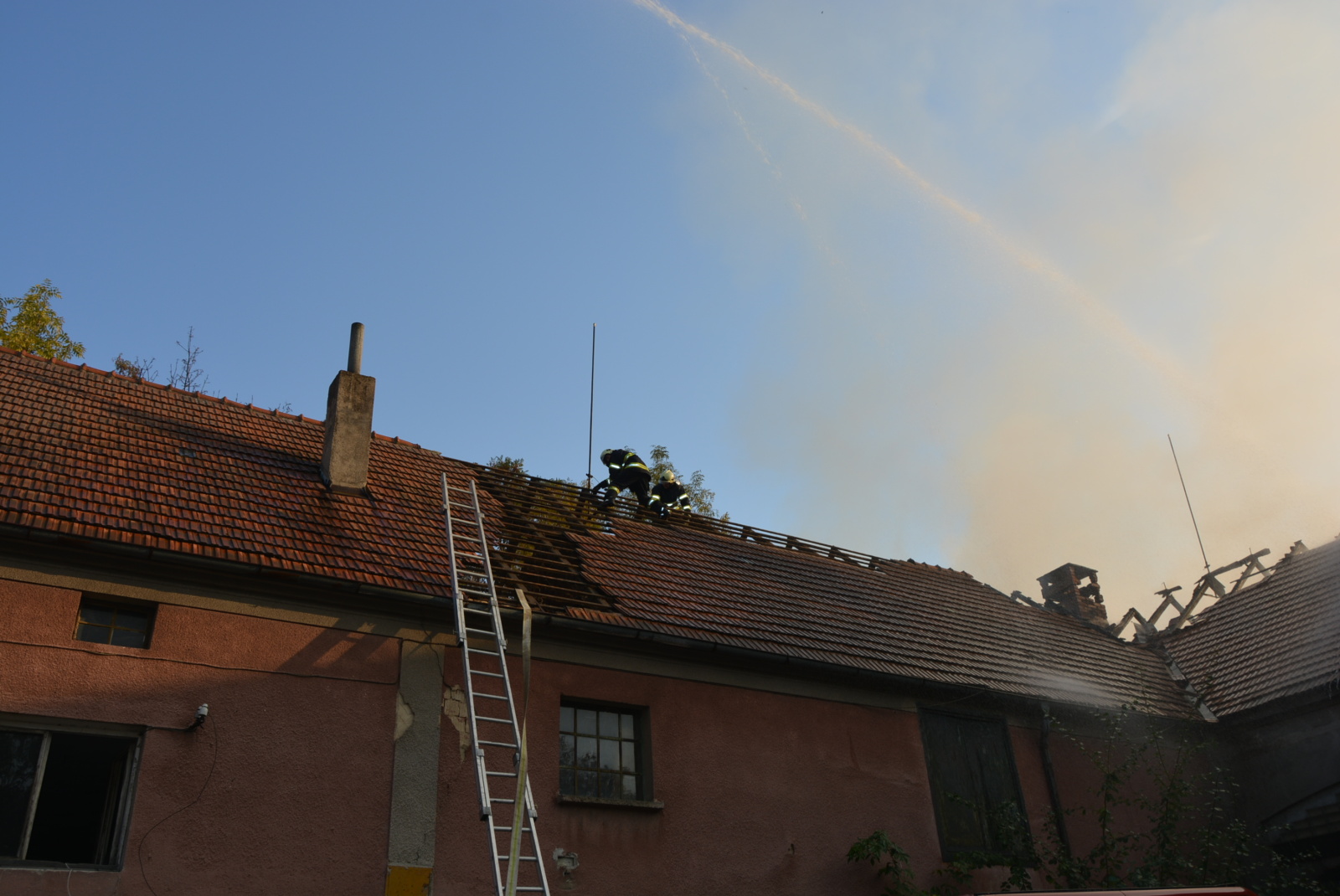 z Mělníka se dvěma cisternami a velitelským vozidlem. Vzápětí na linku 112 zavolal oznamovatel, který upřesnil, že hoří celá střecha rozlehlého neobývaného domu. Proto byl okamžitě vyhlášen druhý stupeň požárního poplachu a k události vyjely další profesionální a dobrovolné jednotky.
