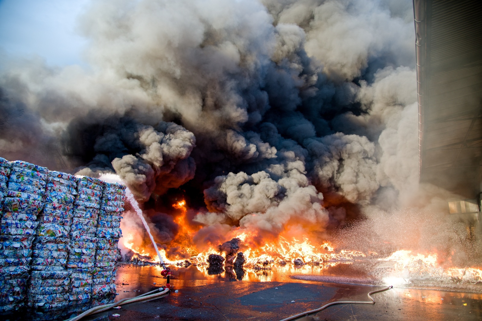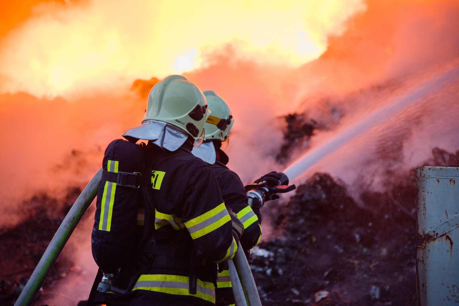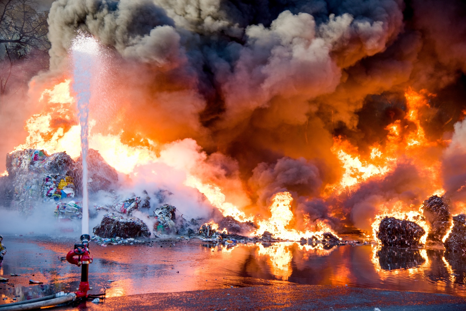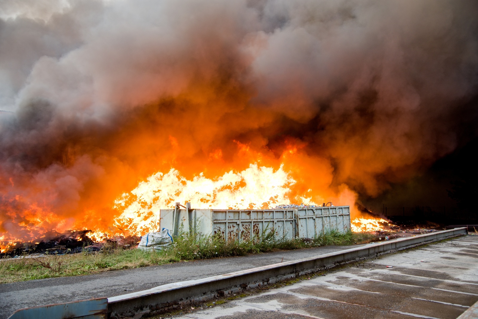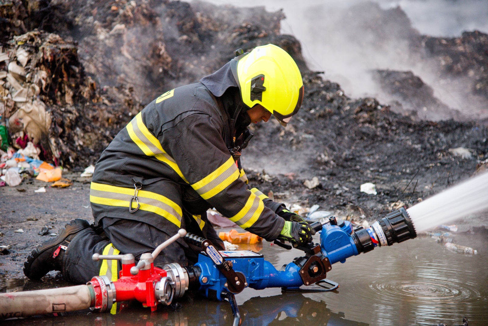 První jednotka, která dojela k požáru, upřesnila, že začínají kouřit naskladněné balíky tříděného odpadu a zatím se nemohou dostat do haly. Zároveň velitel zásahu nechal zvýšit poplachový stupeň na třetí a povolat další jednotky včetně Chemické laboratoře Kamenice, která monitorovala škodlivé látky v okolí požáru na předem vytipovaných místech. Za necelou půlhodinu však byl poplachový stupeň zvýšen na zvláštní, který je nejvyšším možným. K likvidaci požáru zamířily další jednotky. Na místní požární nádrži bylo zřízeno čerpací stanoviště, aby byla zajištěná plynulá dodávka hasební vody k likvidaci požáru. K efektivnějšímu zvládnutí zásahu bylo požářiště rozděleno na čtyři bojové úseky, každý s vlastním velitelem a byl zřízen štáb velitele zásahu. K likvidaci plamenného hoření nasadili hasiči monitory a několik vodních proudů. Zaměřili se v první fázi hlavně na ochranu okolního lesa a budovy třídírny. Na pomoc s hašením v místech, kam se hasiči nemohou dostat, byl povolán vrtulník Letecké služby Policie ČR s bambi vakem.