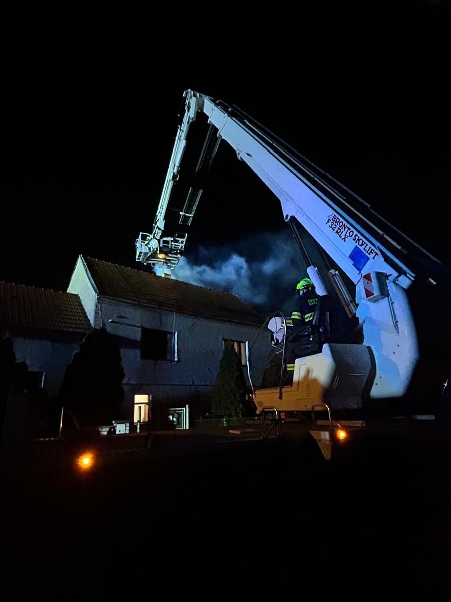 V Libčicích nad Vltavou zasahovali profesionální hasiči z Kralup nad Vltavou a Roztok společně s místní dobrovolnou jednotkou u požáru sazí v komíně rodinného domu. K plamenům se dostali pomocí výškové techniky a hoření srazili pískem a kominickým nářadím. Majitel musí podle hasičů nechat provést revizi a do té doby nesmí komín používat.