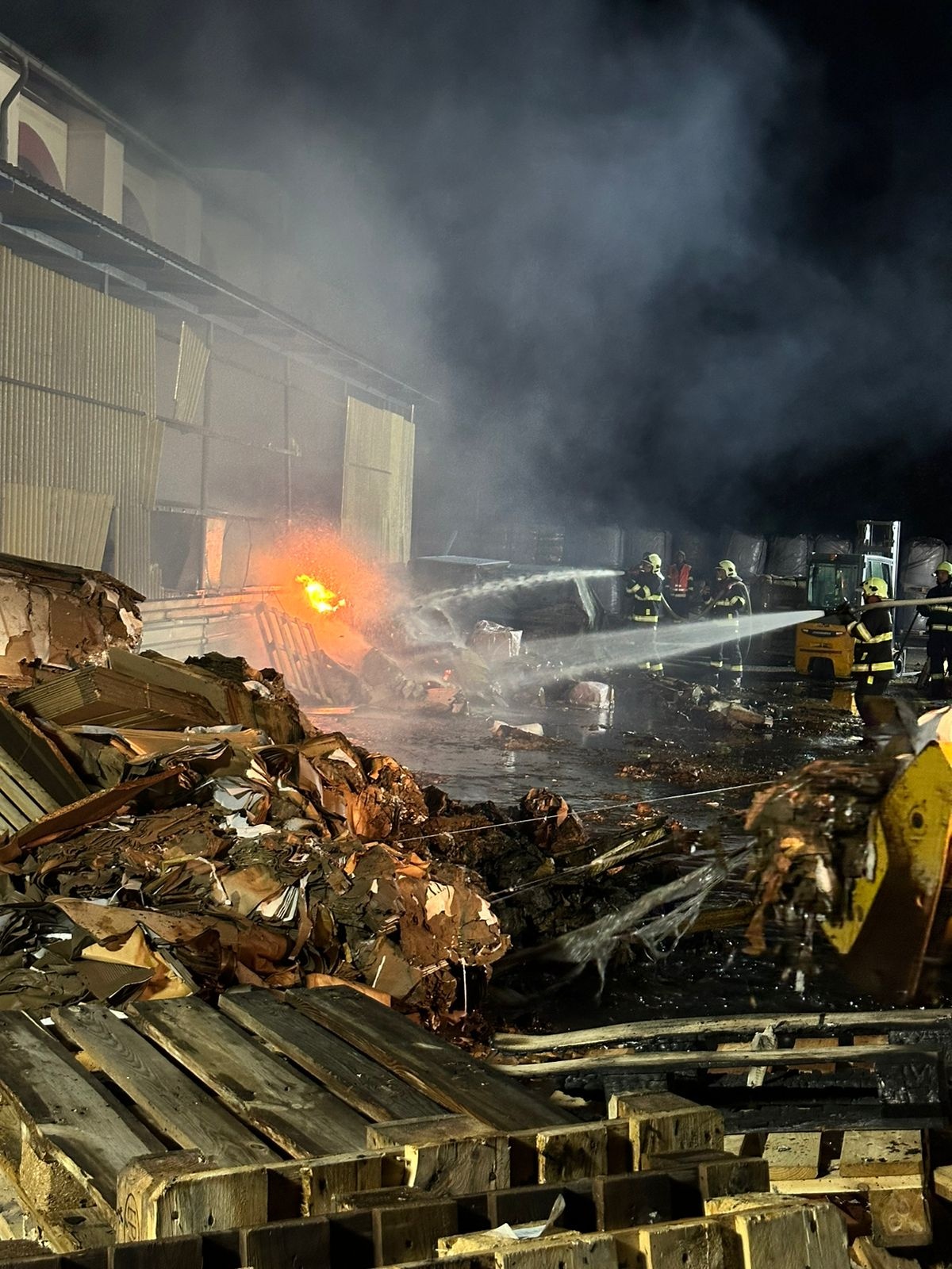 Vlastní zásah byl veden jak z vnějšku budovy, tak především vnitřkem, a spočíval v trpělivém rozebírání uskladněných kartónů. Ty byly za pomoci těžké techniky postupně vyváženy před halu, kde byly prolévány vodou. Vzhledem ke skutečnosti, že hala měla 800 m2, trvalo vyvážení materiálu po celou noc. Teprve v ranních hodinách mohl být stupeň požárního poplachu snížen na druhý a první. Během noci se zasahující hasiči střídali v práci. Zásah byl fyzicky velmi náročný a bylo nutné zajistit místo pro odpočinek, kde by hasiči, kteří aktuálně nehasili, mohli nabrat sílu před další činností. Proto velitel zásahu zřídil prostor pro odpočinek, kde pitný režim zajistilo město Brandýs nad Labem a stravu Český červený kříž.