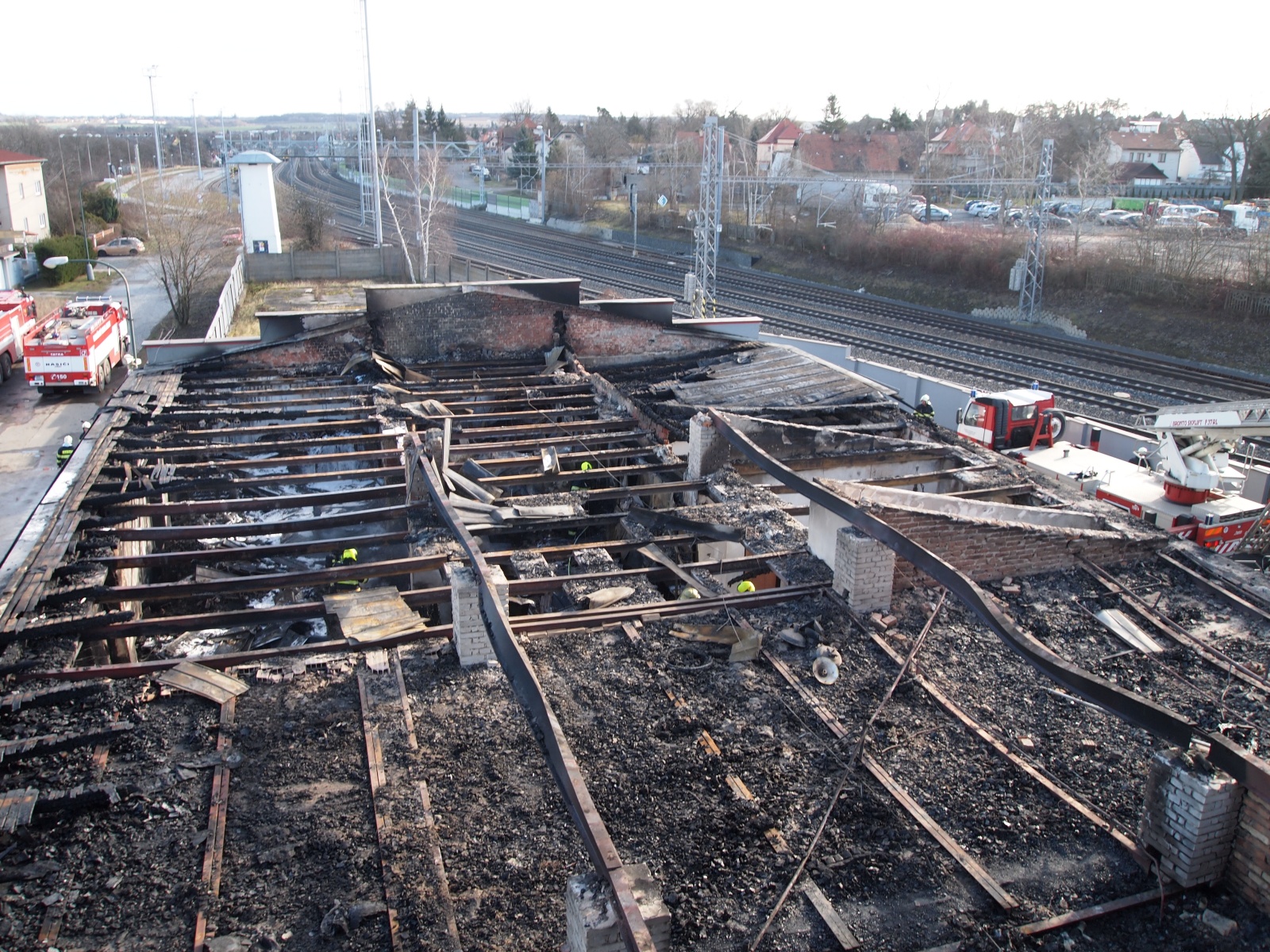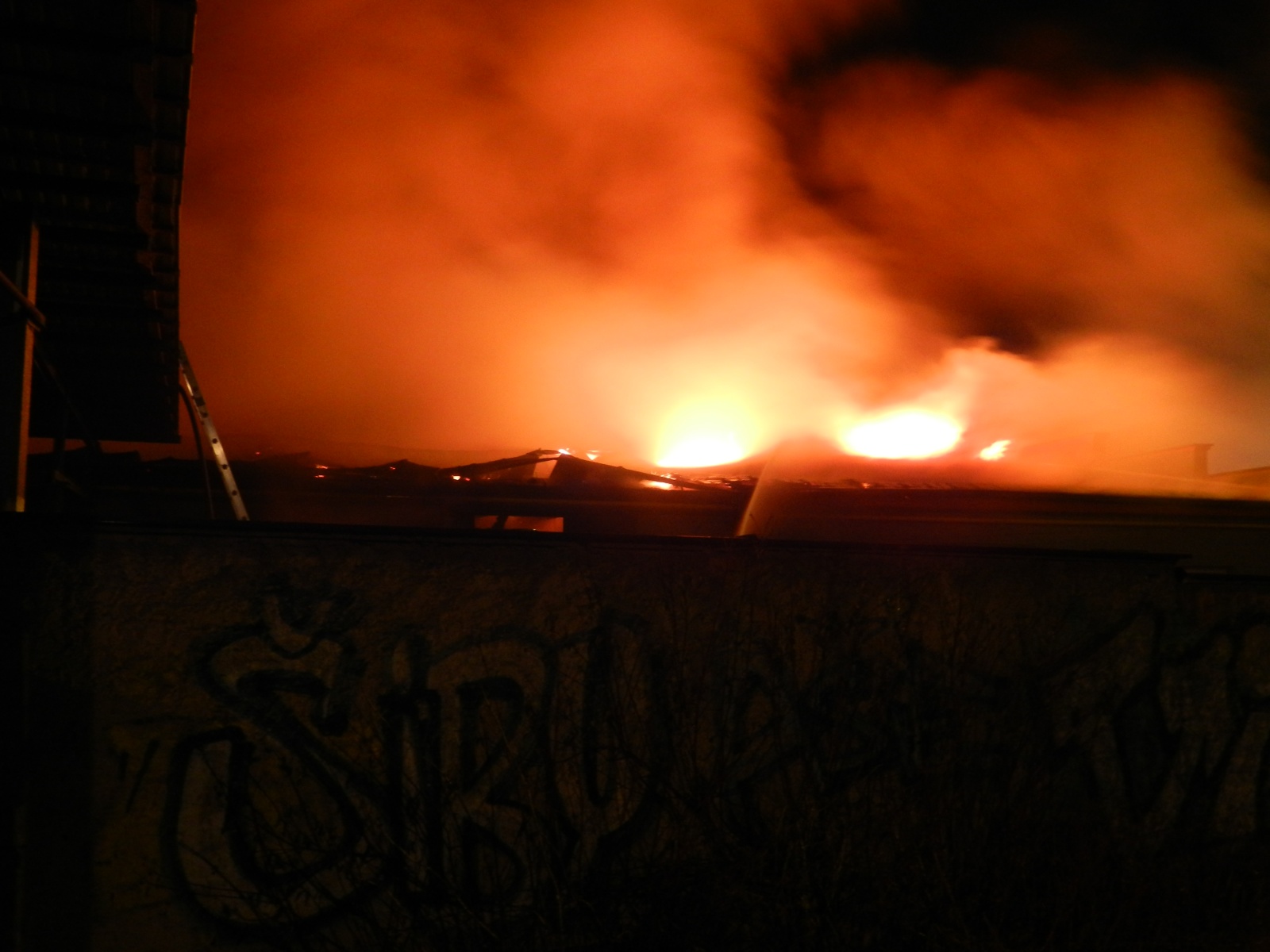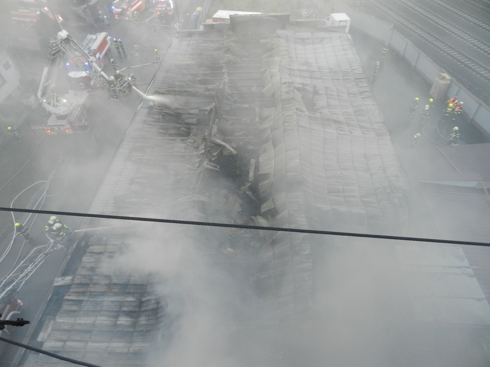 Dalším průzkumem bylo zjištěno, že požár zasáhl skladovací halu o půdorysu 30x15 metrů, která sousedila štítovou zdí s ubytovnou. Z té hasiči preventivně evakuovali devět osob, pro které vyslali z mladoboleslavské stanice evakuační autobus. Zásah probíhal třemi C proudy i za použití výškové techniky. Její nasazení však omezoval silný vítr, který komplikoval vlastní hasební práce i tím, že značně podporoval plamenné hoření. Další komplikací na místě zásahu bylo dovážení hasební vody. V blízkém okolí se nenacházel žádný vodní zdroj, a tak bylo nutné povolat další cisterny k zabezpečení kyvadlové dopravy vody.