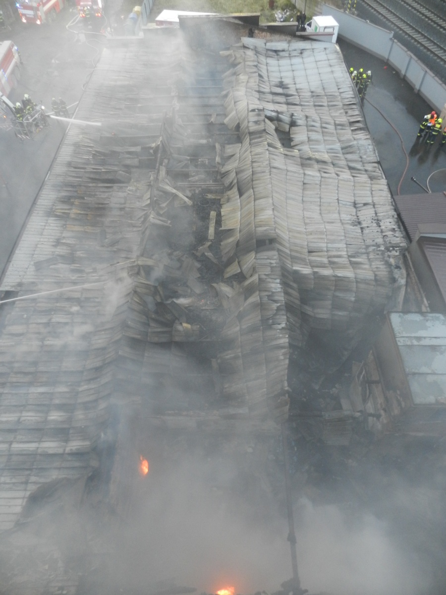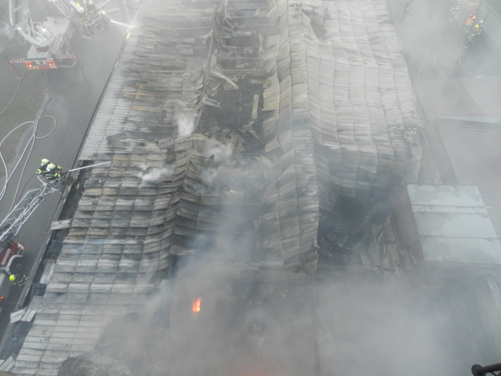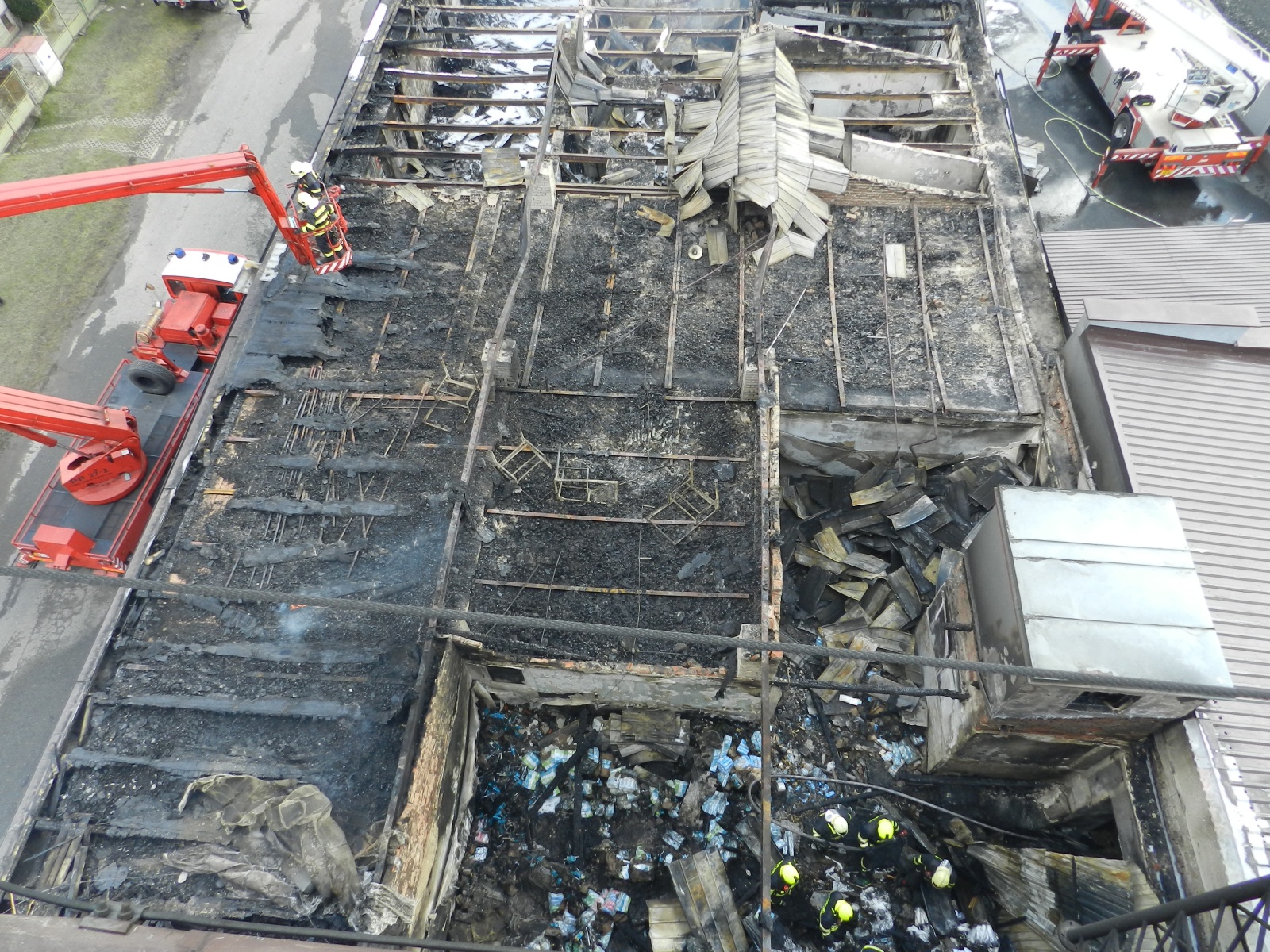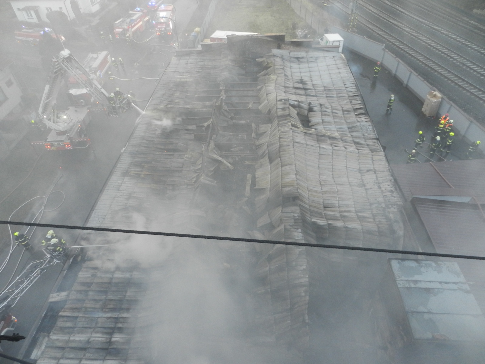 Krátce před šestou hodinou byl na místo vyslán také kontejner kombinovaného hašení a týlový kontejner k zabezpečení zázemí pro zasahující hasiče. Z důvodu velkého počtu zasahujících jednotek byl vyhlášen třetí poplachový stupeň.