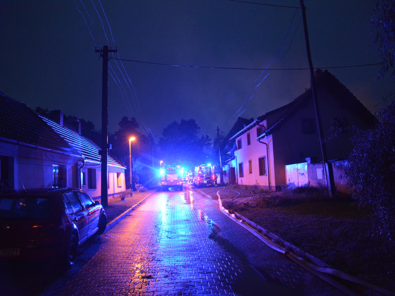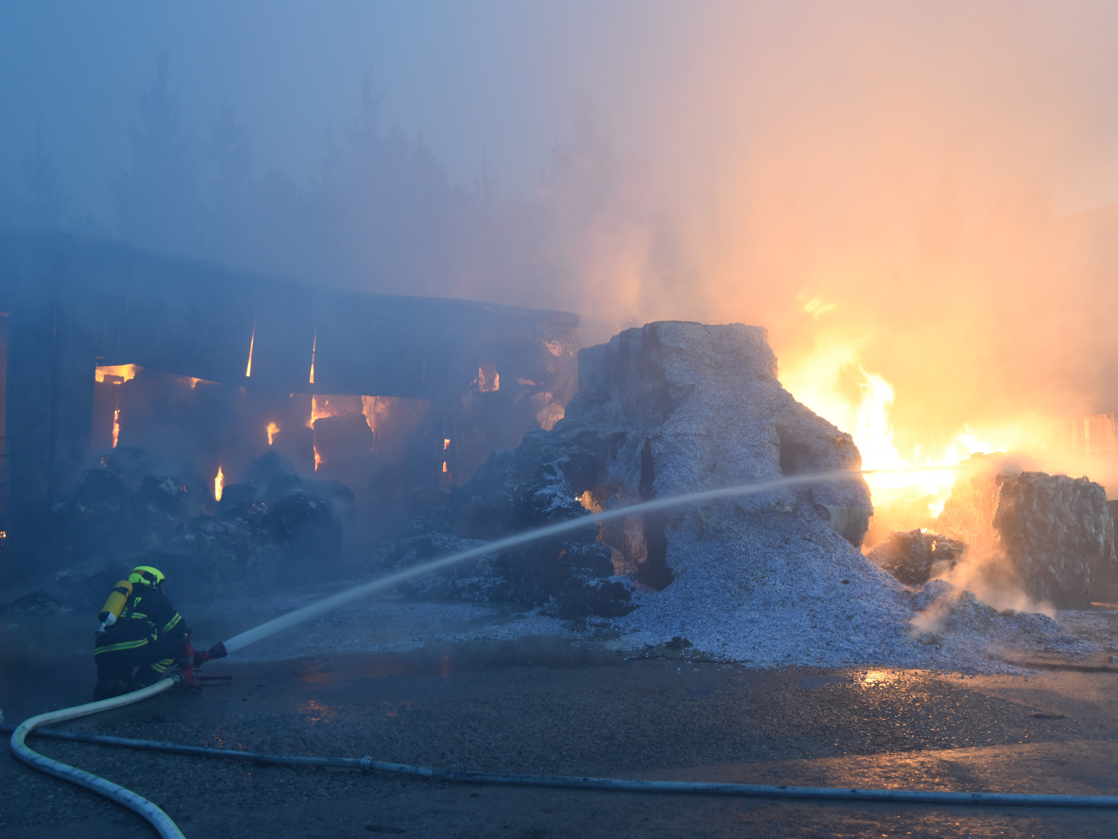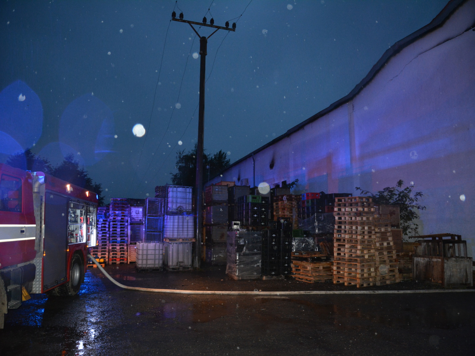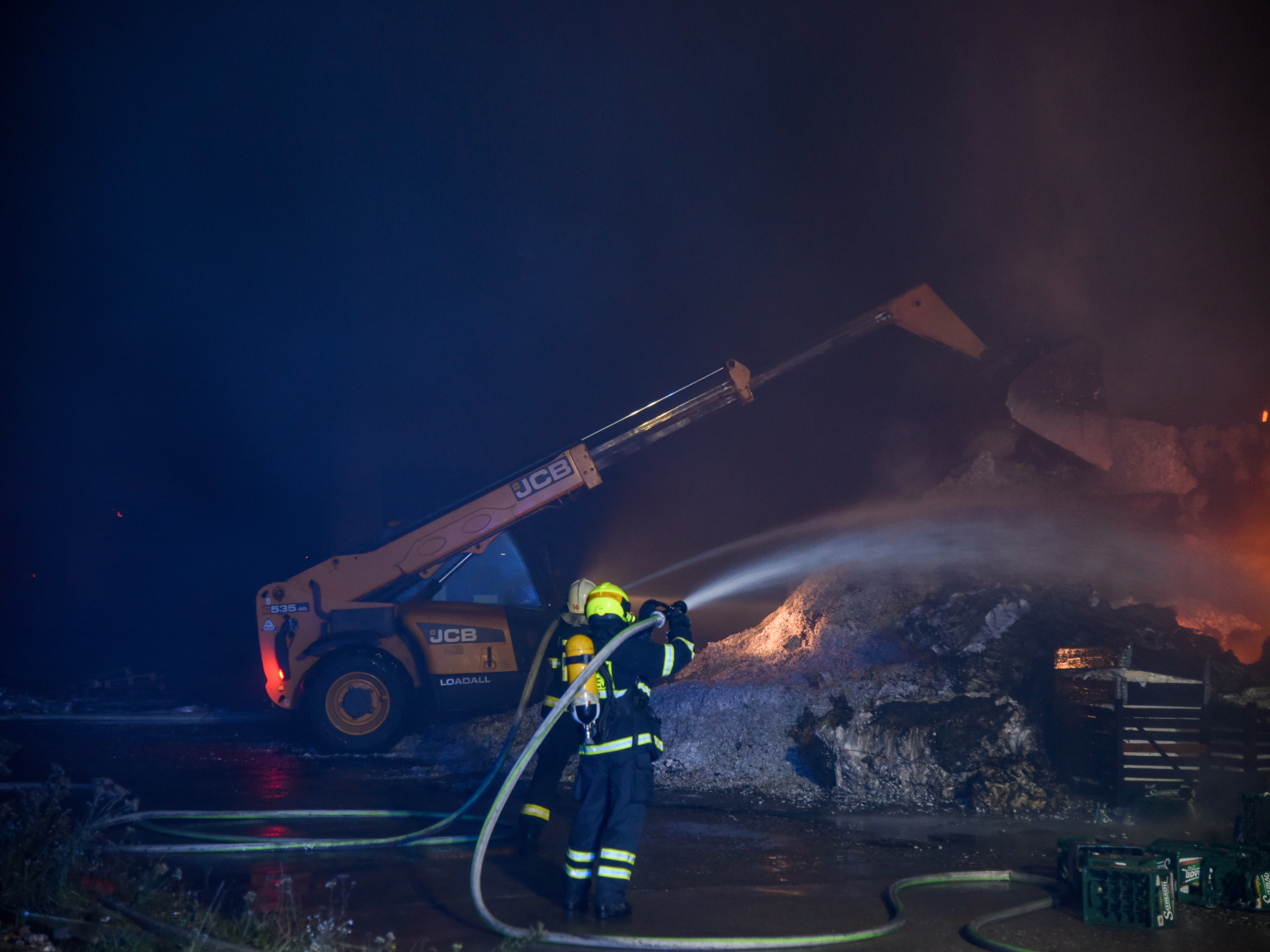 Hasební zásah byl zaměřen také na ochranu okolních objektů a stájí s koňmi. Zároveň bylo nutné evakuovat nádrže s naftou a autogenní soupravu. Za pomoci místního zemědělce s manipulátorem probíhalo rozebírání naskladněného odpadu. Kolem dvaadvacáté hodiny na místě zasahovalo 115 hasičů, z toho 31 profesionálních a 84 dobrovolných. Požár se podařilo dostat pod kontrolu a vyhlásit lokalizaci chvíli po dvacáté třetí hodině. Následně začala probíhat redukce sil a prostředků a některé jednotky se tak mohly vrátit na své základny.