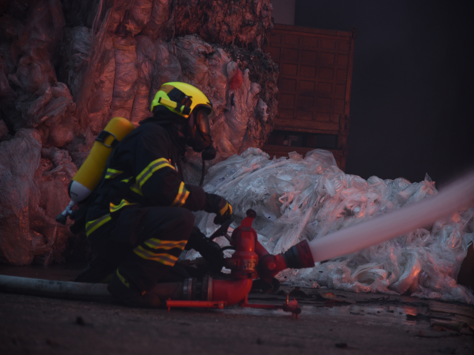 Podrobnější průzkum odhalil požár dvou hal a lisovaného odpadu na volném prostranství v plném rozsahu. Jedna hala byla určena na třídění a lisování papíru a druhá na zpracování plastového odpadu. Na místě byl zřízen štáb velitele zásahu k efektivnějšímu zdolání požáru. Pro plynulou dodávku hasební vody bylo na Labi zřízeno čerpací stanoviště a místo zásahu bylo rozděleno na tři samostatné úseky, každý s vlastním velitelem. Deset minut před devatenáctou hodinou byl vyhlášen nejvyšší možný poplachový stupeň – zvláštní. K události zamířily další jednotky. V podvečer tak u požáru zasahovalo už 21 hasičských jednotek.