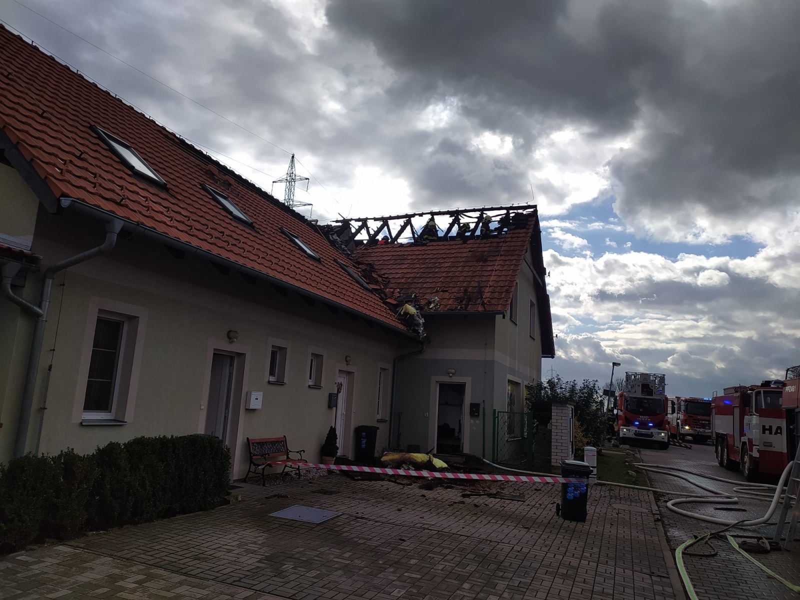 Operační důstojník vyslal k požáru jednotky z prvního stupně poplachu – a to včetně dvou výškových technik a speciálního kontejneru pro hašení zařízení pod elektrickým napětím. Po příjezdu první jednotky na místo bylo upřesněno, že jde o požár střechy většího rozsahu. Majitelka části objektu uvedla, že by se v domě neměly nacházet žádné osoby, což se po rychlém průzkumu potvrdilo.