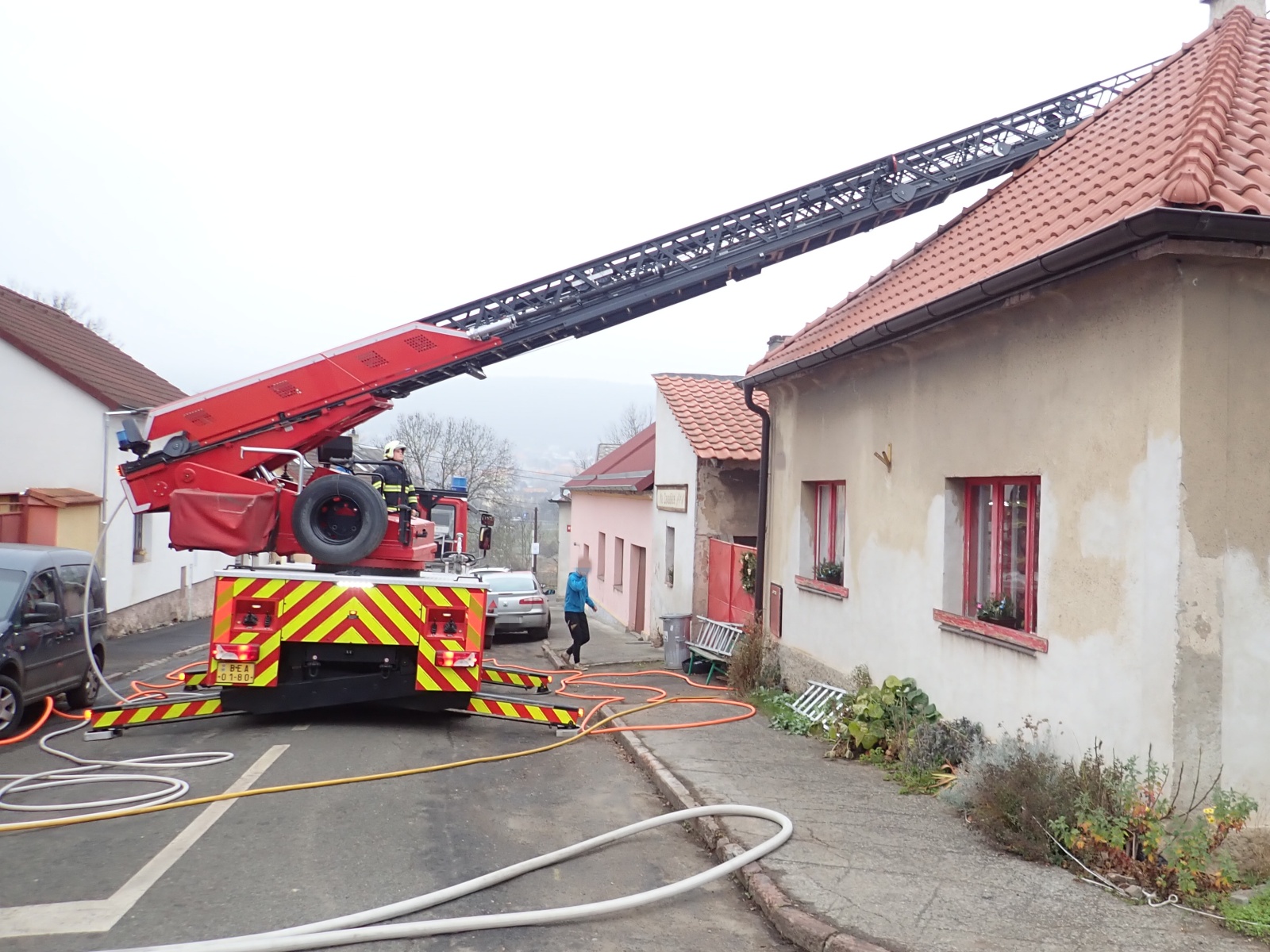 Operační důstojník na místo vyslal profesionální jednotku z Berouna včetně výškové techniky. Po provedeném průzkumu hasiči zjistili, že oheň zachvátil podkroví domu. Jednotce se velmi rychle podařilo dostat požár pod kontrolu. K jeho uhašení použila vysokotlaký a dva D vodní proudy a také hasicí hřeby.