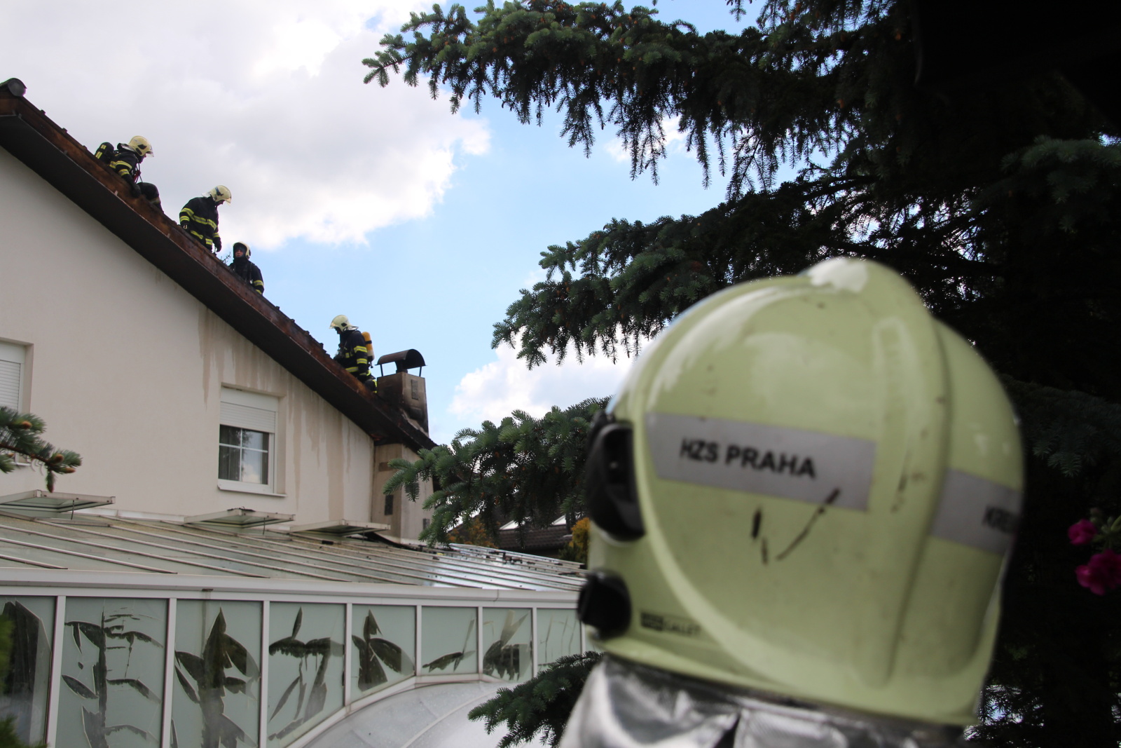 Požár střechy rodinného domu v Průhonicích likvidovaly čtyři jednotky VIDEO