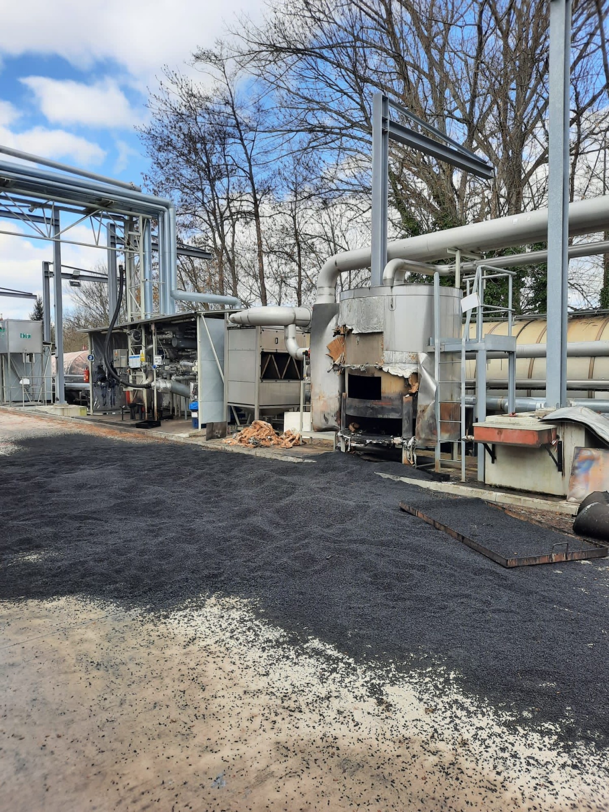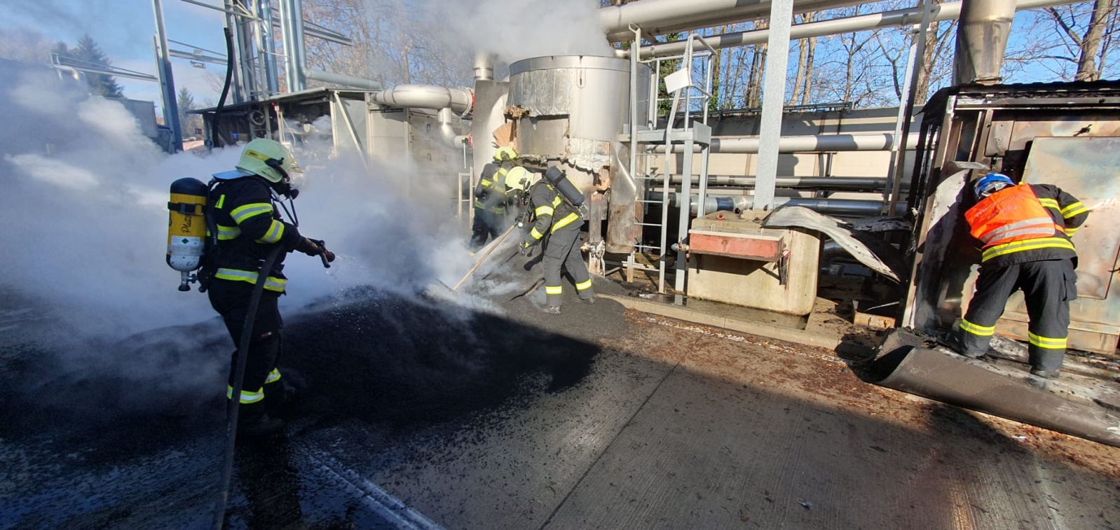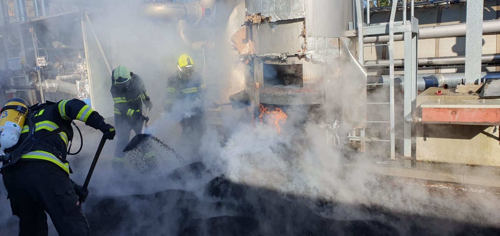 Mezi tím, co hasiči probírali s firemním technikem taktiku hašení této technologie, rozebrali opláštění zásobníku a ochlazovali jej. Pomocí speciálního zařízení Cobra a rozbrušovací pily byl vyříznut otvor do zásobníku, odkud bylo vyskladněno žhnoucí aktivní uhlí, které bylo uhašeno dvěma vysokotlakými vodními proudy. Za aktivního přispění technika a majitele technologie se podařilo po půl desáté dopolední dostat požár pod kontrolu a mohla být vyhlášena lokalizace. Půl hodiny poté byl požár zcela zlikvidovaný.