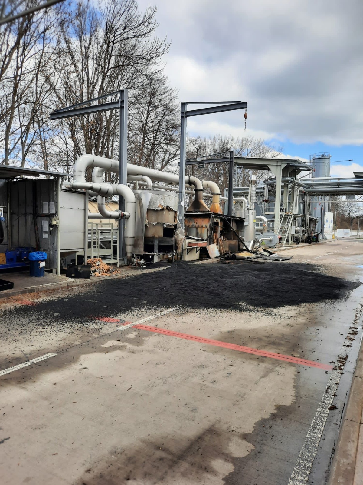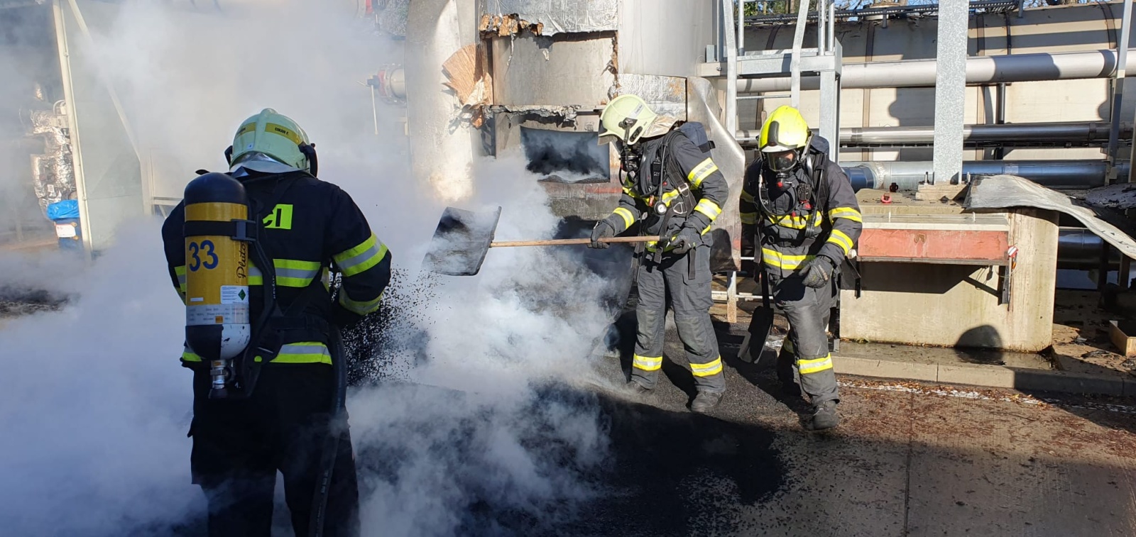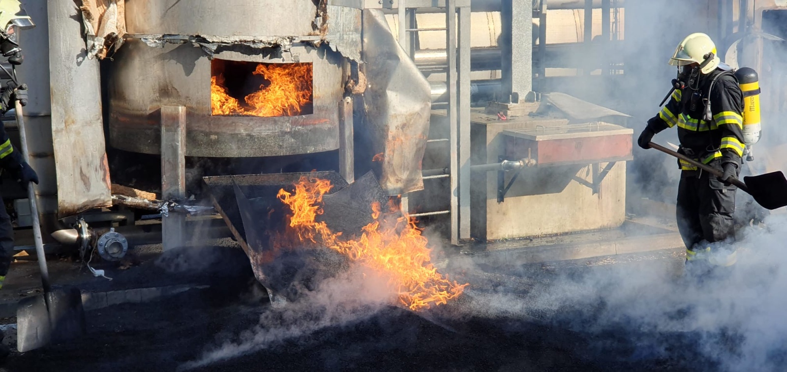 Průzkumem bylo zjištěno, že jde o požár uzavřeného technologického zařízení. V zásobníku s aktivním uhlím o rozměrech 3x2 metry docházelo k odhořívání plynů, které do něj odcházejí z nádrží s asfaltem a následně se zde filtrují.