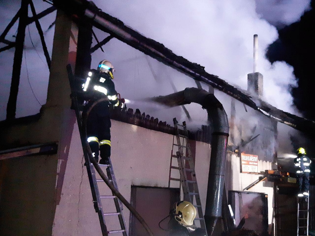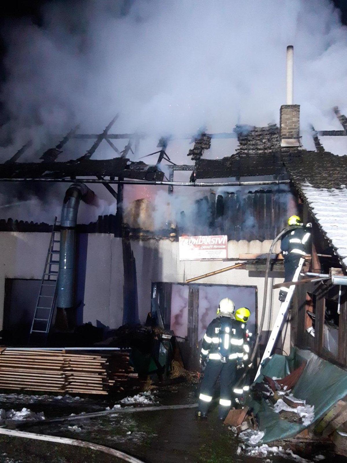 Operační důstojník k události vyslal jednotky požární ochrany z prvního poplachového stupně. Prvotním průzkumem na místě bylo zjištěno, že jde o požár roubeného objektu s půdorysnými rozměry 20x10 metrů, kde se v přízemí nacházela truhlářská dílna a v patře bylo uskladněno seno, sláma a piliny.