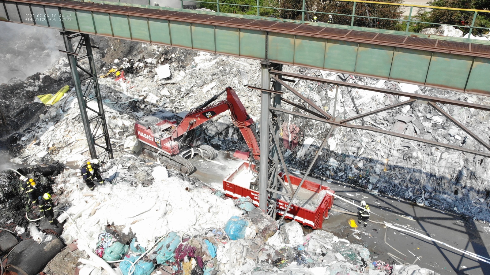 Během následující hodiny byl požární poplachový stupeň zvýšen na třetí a následně dokonce na nejvyšší možný - zvláštní. K požáru tak mířily jednotky ze širokého okolí. Hasební práce probíhaly za vysokého nasazení profesionálních, dobrovolných a podnikových hasičů, kteří se na místě střídali v denním a nočním režimu. Využita byla také speciální technika ze Záchranného útvar HZS ČR. Univerzální dokončovací stroj, rypadlo CAT a nakladač JCB postupně odkrývaly ohniska požáru, která byla vyhledávána za pomoci dronu s termovizí.