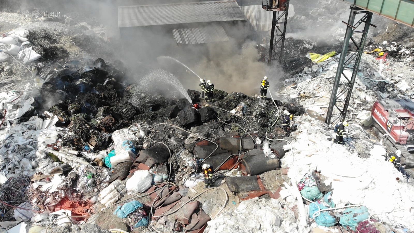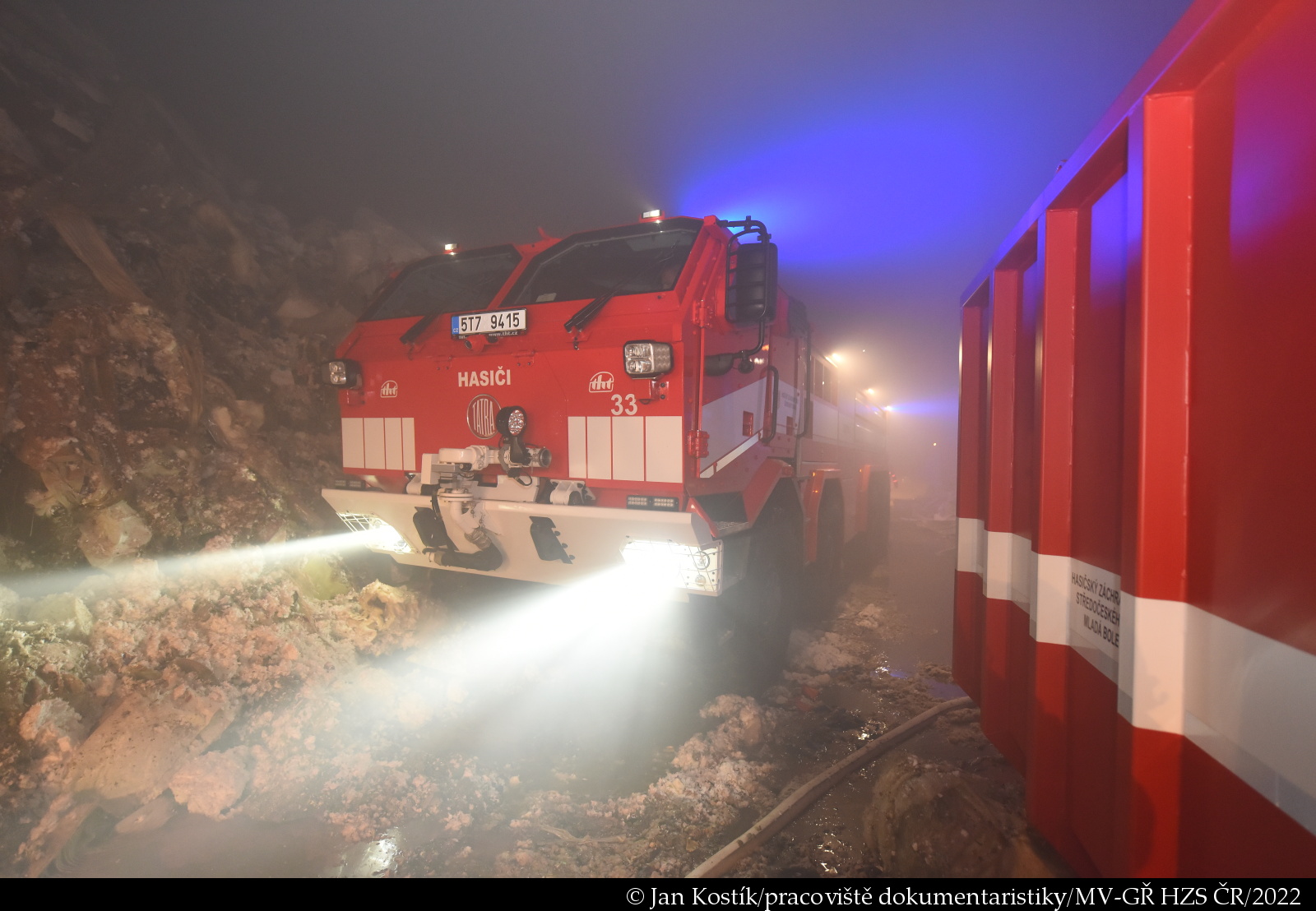 Operační důstojník na místo vyslal jednotky z prvního stupně požárního poplachu. Osm a půl minuty od nahlášení události byla první jednotka na místě. Prvotním průzkumem bylo zjištěno, že jde o požár skládky plastového odpadu většího rozsahu v šíři cca 50 metrů. Byl vyhlášen druhý stupeň požárního poplachu a k události zamířily další jednotky.